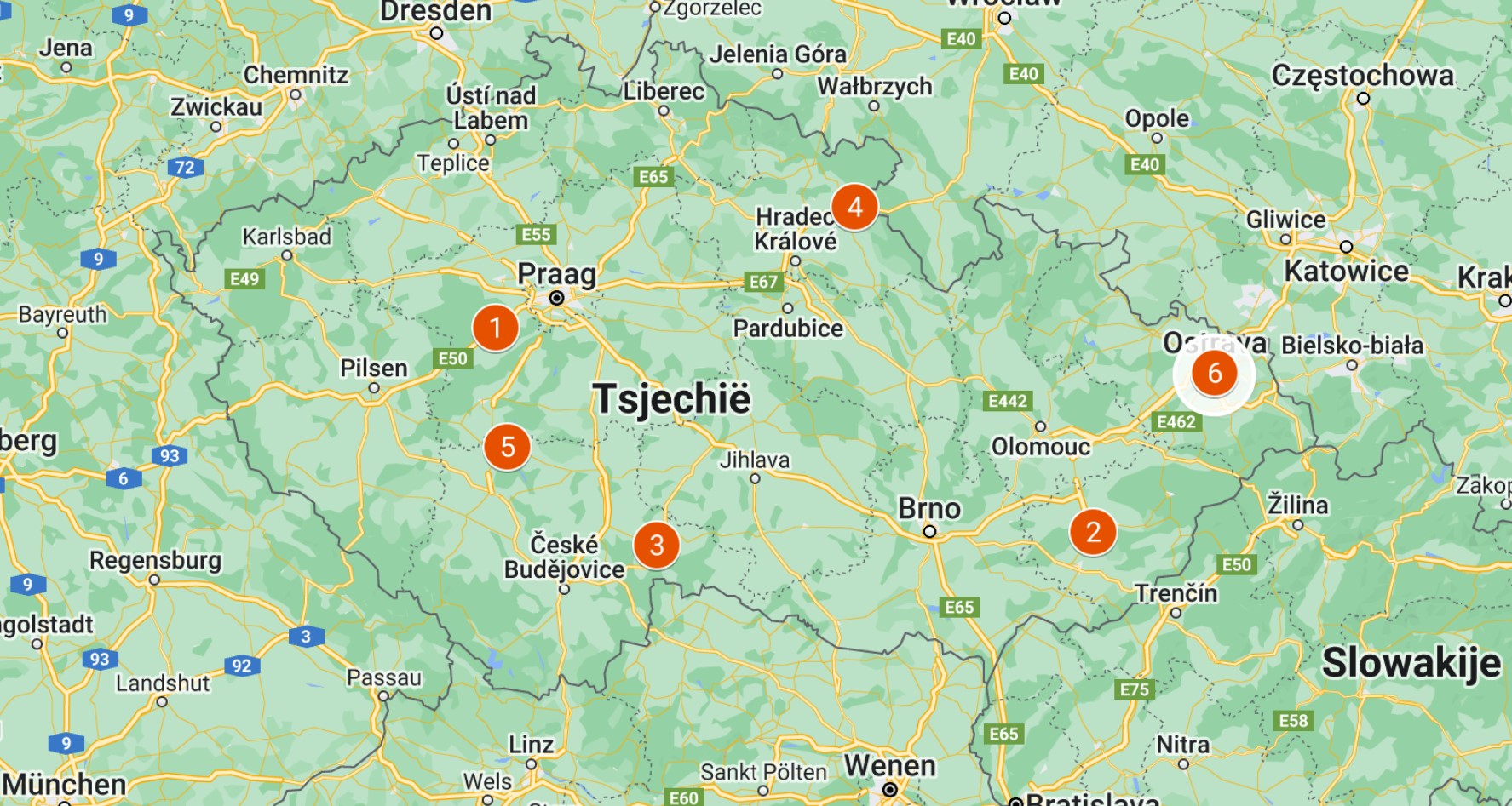 Tsjechië/Tschechien/Czech Republic | Overzichtskaart plaatsen van de hotels/ klik op actieve kaart in Google Maps |