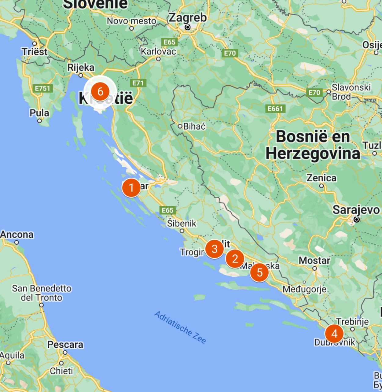 Kroatië/Kroatien/Croatia | Overzichtskaart plaatsen van de hotels/ klik op actieve kaart in Google Maps |