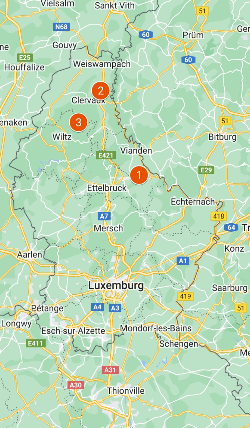 Luxemburg | Overzichtskaart plaatsen van de hotels/ klik op actieve kaart in Google Maps |