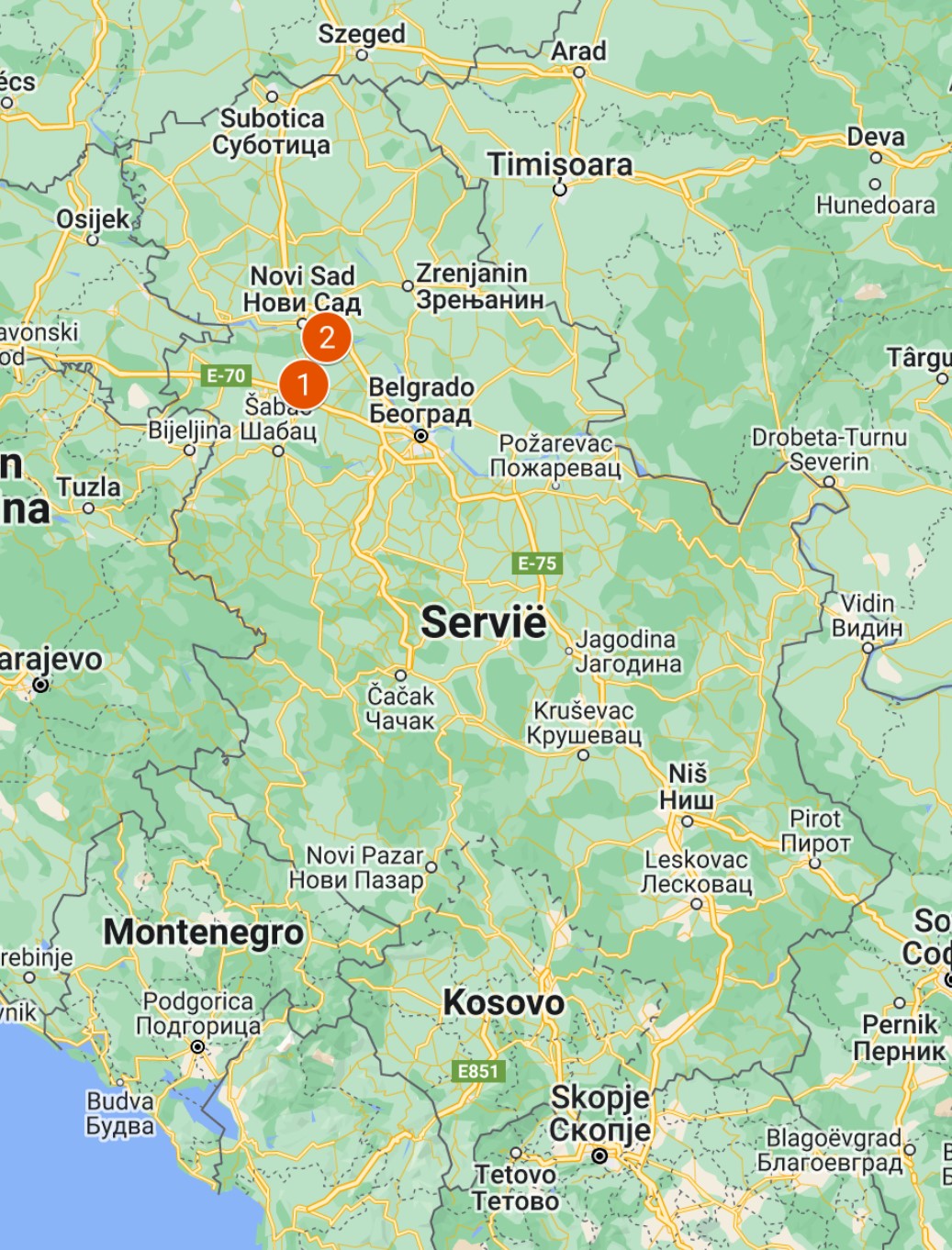 Servië/Serbien/Serbia | Overzichtskaart plaatsen van de hotels/ klik op actieve kaart in Google Maps |