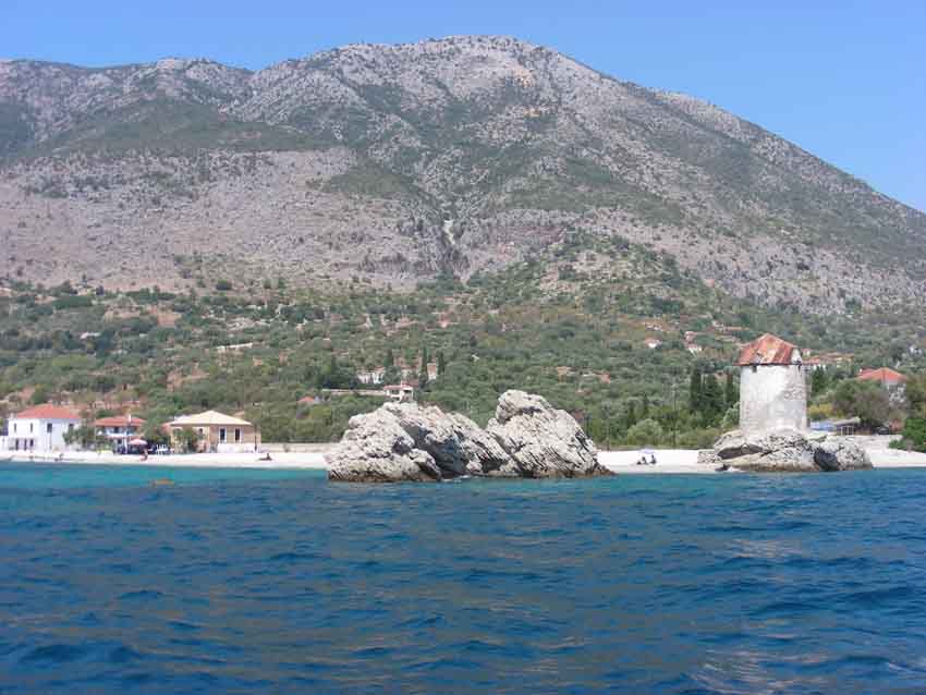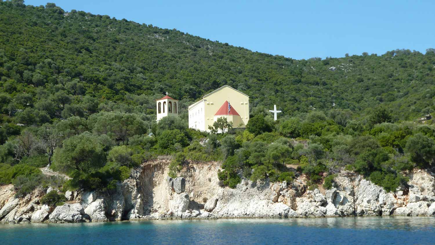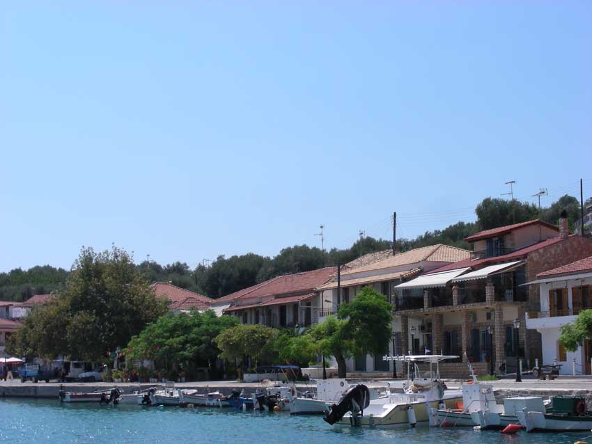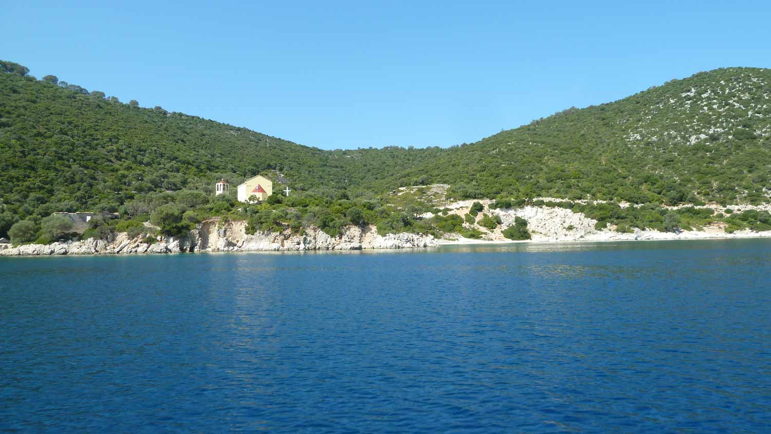 Kalamos (dorp) 14 zeemijl (26 km) ten zuid-oosten van Dessimi Bay op Lefkas