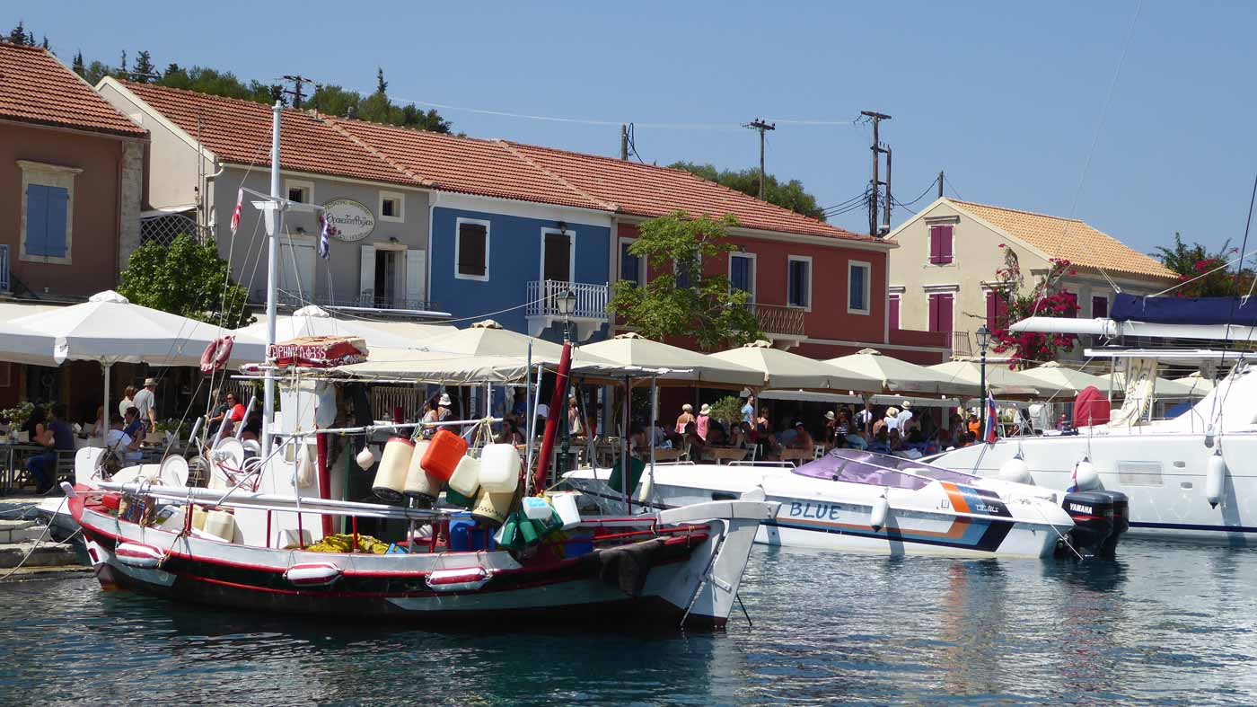 Kefalonia is het grootste van de Ionische eilanden met een oppervlakte van 781 vierkante kilometer en een kustlijn van 254 km.. Het eiland wordt gedomineerd door de hoogste berg, Ainos (1628m) In het noorden en het westen heeft het eiland een woeste en imposante kustlijn, terwijl in he zuiden en het oosten grote zandstranden liggen met kristalhelder water. De hoofdstad van het eiland is Argostoli (ong. 7500 inwoners), waar het vooral 's-zomers erg druk kan zijn.Argostoli, eveneals vele andere plaatsjes op het eiland, zijn complete herbouwd na de aarbeving van 1953. Het enige plaatsje dat gespaard bleef was Fiskaro, helemaal op de noord-oost punt. Daarom ziet men in Fiscaro nog overblijfselen van de oude architectuur en is het daarom een van de mooiste plaatsjes op het eiland. Het eiland heeft vier grote baaien, bijna fjorden, die zeer veilige havens voor schepen zijn.Aan de noord-west zijde is dat de baai van Myrtos.