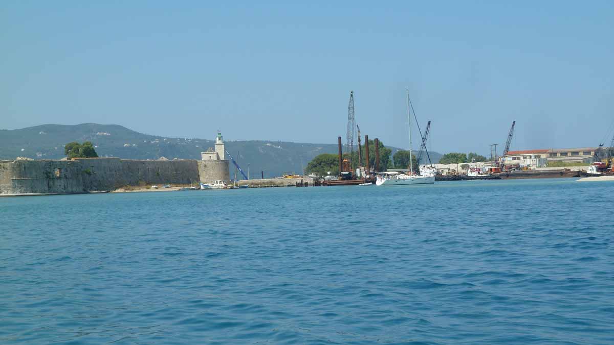 van bootverhuurder Panos en zijn zoon kon Els op de nieuwe steiger ook in de boot komen. Zijn een stukje wezen varen en vervolgens naar Taverna Porto Spilia op Meganissi