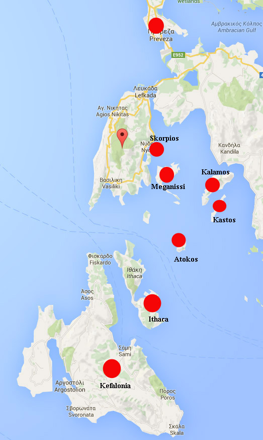 Wim's Place: Een aanklikbare kaart van eilanden rondom Lefkas
