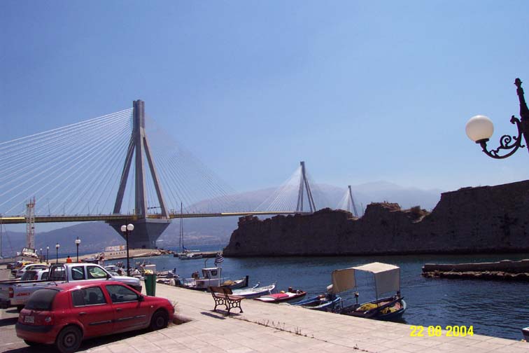 Op het vasteland tenslotte het meest opzienbarende technische hoogstandje; de in 2004 geopende brug tussen Rio (Patras/Peloponnesus) en Antirio (vaste land) genaamd de Harilaos Trikoupis brug. Vroeger was