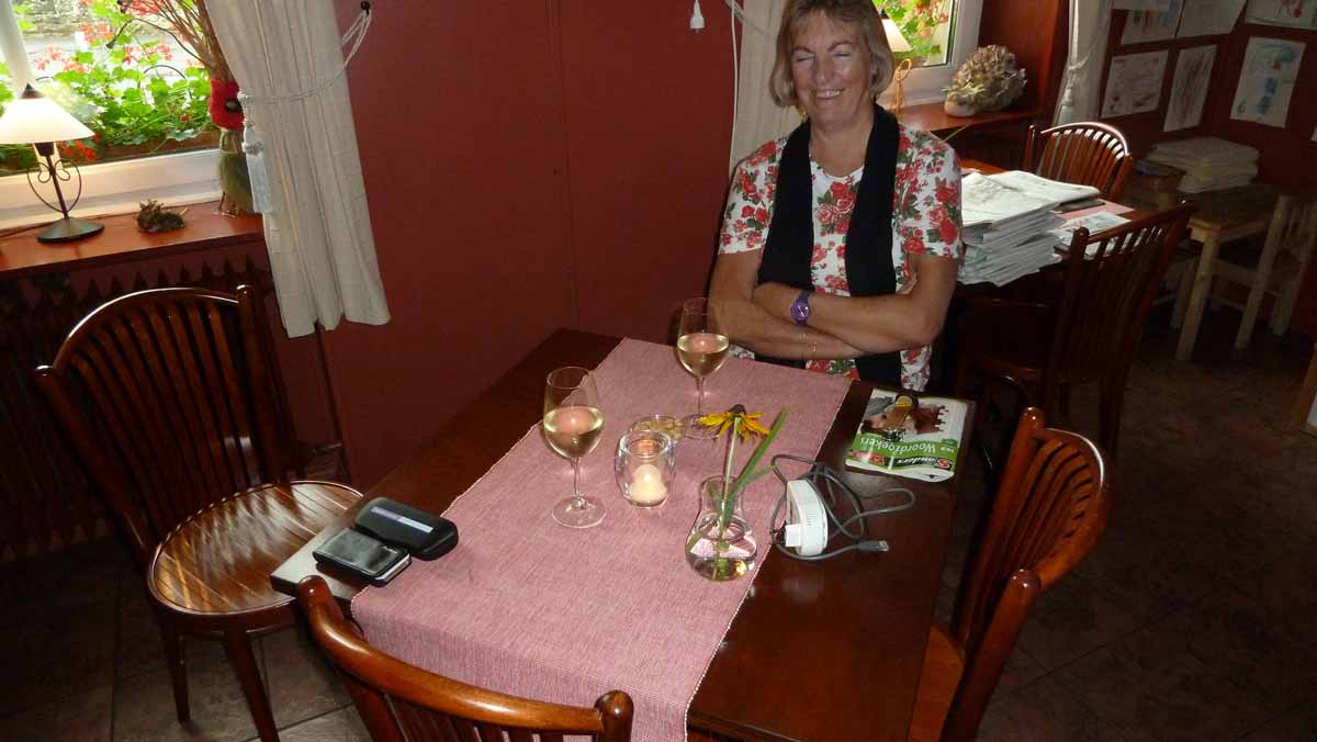 Vanochtend rond 11.00 uur hebben wij de kleine en grote boot uit zee gehaald en op/naast de boothelling geparkeerd (zomer 14206). Vandaag de buitenkant van de boot schoongemaakt wat het naarste werk van de vakantie is door alle algaanslag. Ook alle spullen uit de grote boot schoongemaakt (zomer 14207). Toen dat allemaal klaar was, zo rond 15.30 uur, even pauze genomen om uit te blazen en te genieten van alle mooie bloemen die inmiddels hier weer bloeien (zomer 14208). Voor morgen staat op het programma de boot van binnen schoonmaken, het kleine bootje schoonmaken en inpakken en daarna komt de lokale bootheer de winterservice van de motor etc. verzorgen.Volgens het weerbericht blijft het zonnige weer met weinig wind nog doorgaan tot eind oktober. Dus wat dat betreft hebben wij geen problemen.