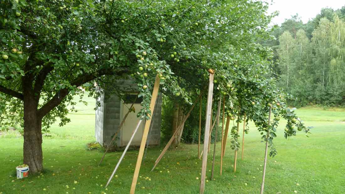 Na het ontbijt even na 9 uur vertrokken uit Wallendorf. Nog een klein stukje door de Duits Eifel gereden en daarna de autosnelweg opgegaan. Grotendeels snelweg gereden; alleen laatste 100 km weer secundaire wegen (Bundesstrassen). Veel regen onderweg. Rond 16.00 uur aangekomen in Voggenzell/Prackenbach bij onze vaste pleisterplaats Gasthof "Zur Rast" (zomer14003). De appelbomen van het gasthof zitten zo vol met appels dat ze ondersteund moeten worden omdat anders alles op de grond gaat hangen (zomer14004). Blijven hier, zoals het er nu naar uitziet, 2 nachten voordat wij aan het "avontuurlijke" traject van onze reis naar Lefkas gaan beginnen.