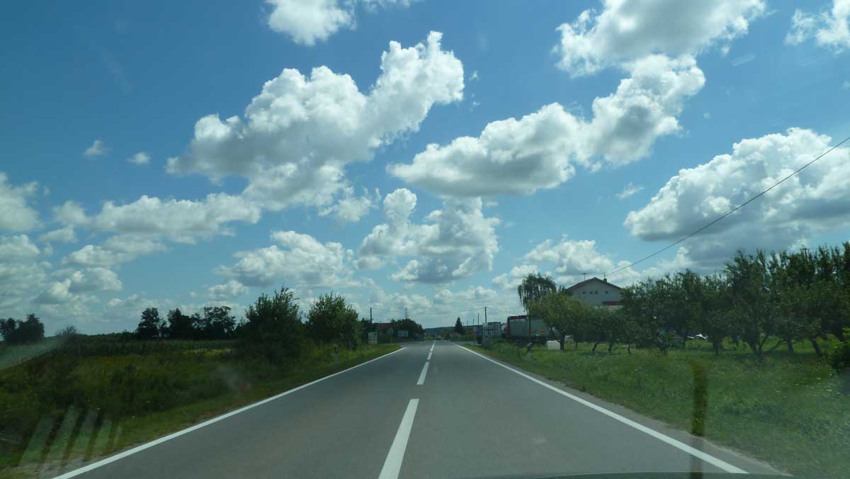 This morning the weather was completely folded. A lot of wind with rain showers in Ruma. So wanted to drive the highway at least up to the border of Slovenia. Just before the border with Croatia all traffic was deflected from the highway. Had to find a different border crossing via inner roads.
