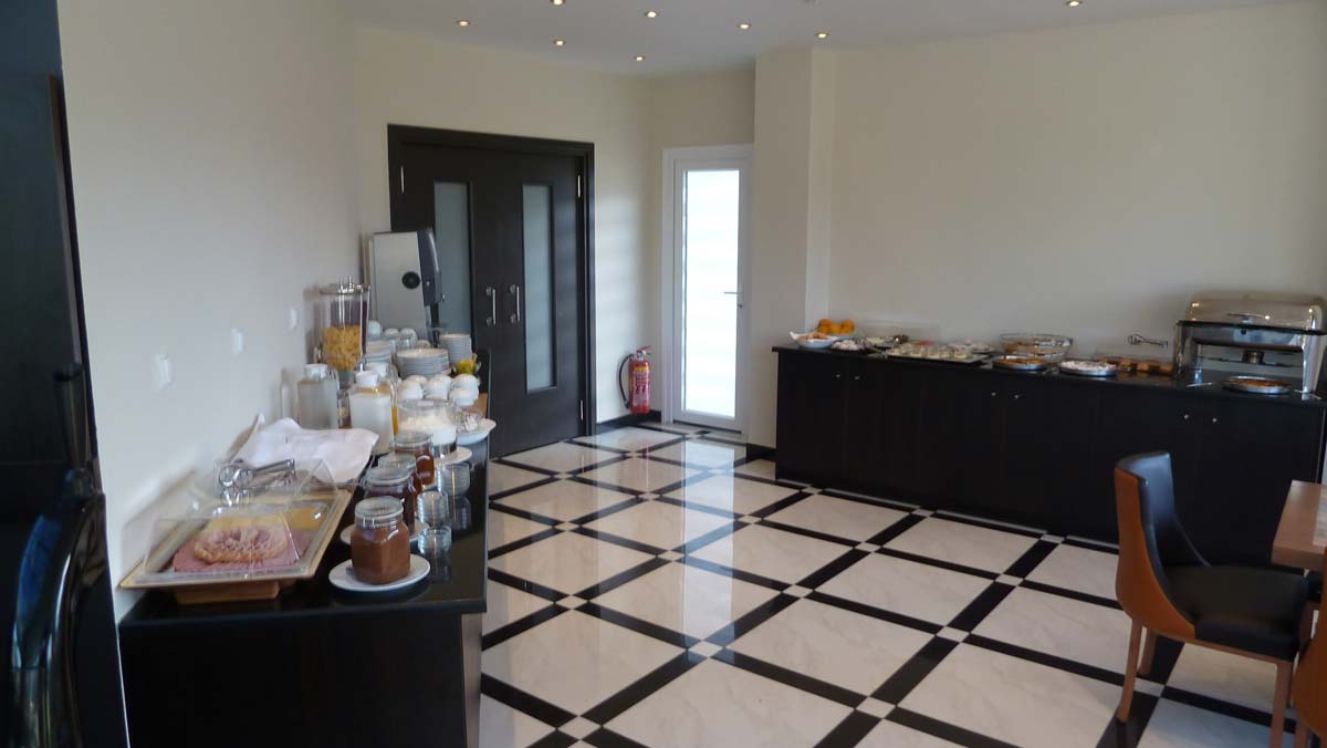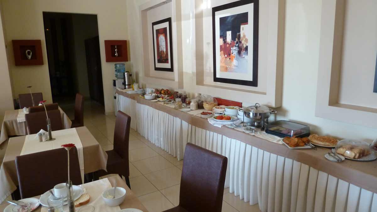 After a, again very rich, buffet breakfast in Hotel Maison left. Over the motorways of Greece, part of the old, 2 lane, "Autoput" that still exists in the southern part of Macedonia and the highways of Macedonia and Serbia. This time no Dinars purchased. Gasoline with credit-card (€ 1.26 per liter), refreshments and hotel with Euri. Around 16: 00 (17: 00 Greek time) arrived in the 40 km Western of Belgrad situated city of Ruma. Overnight, just like on the outward journey, in Hotel Park (**** hotel; room including great breakfast buffet € 46,- for 2 persons). Tomorrow we expect to arrive in Austria, where hotelprices etc. compared to Greece and Serbia are much higher.