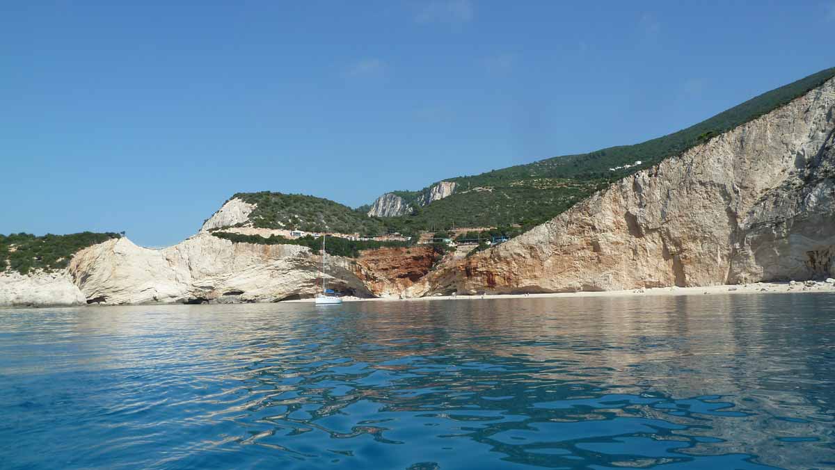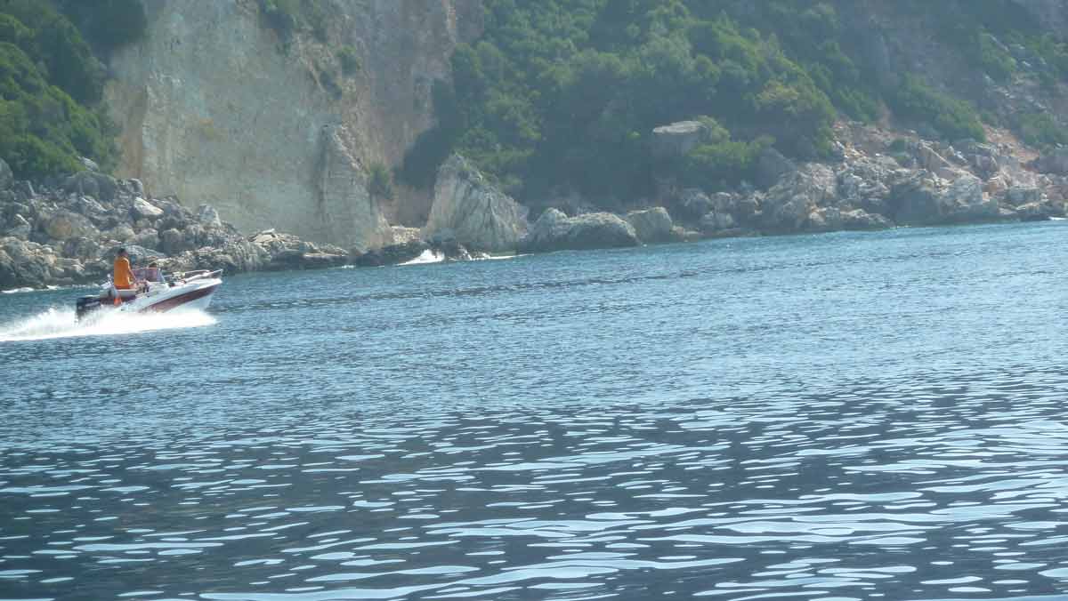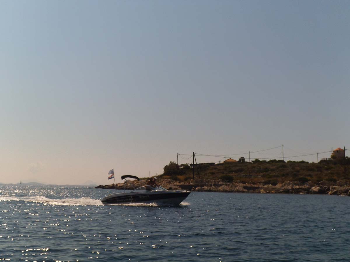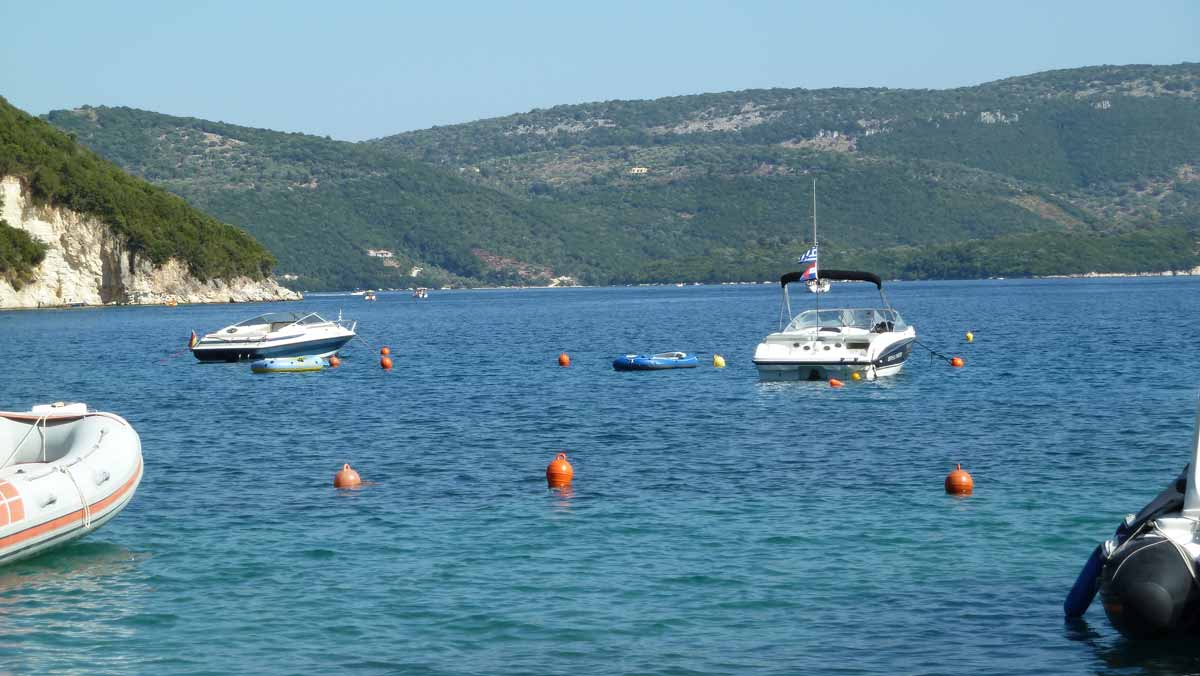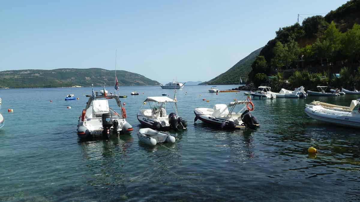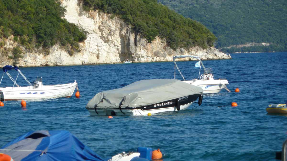 Today, probably for this season, made last boat trip around the island of Lefkas. The usual route, along Lefkada town and the old fort on the northern tip along the now no longer as busy beaches on the west coast. Upon return on our starting point, drunk a bottle of wine in Taverna Porto Spilia and then returned to the camp site. Again today a very smooth sea. Forecast for tomorrow: no change in weatherconditions. As it stands, we still have 3 days to go boating because the big boat is going out of the water Thursday.