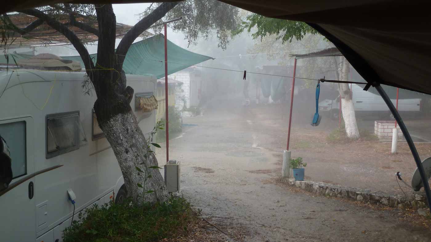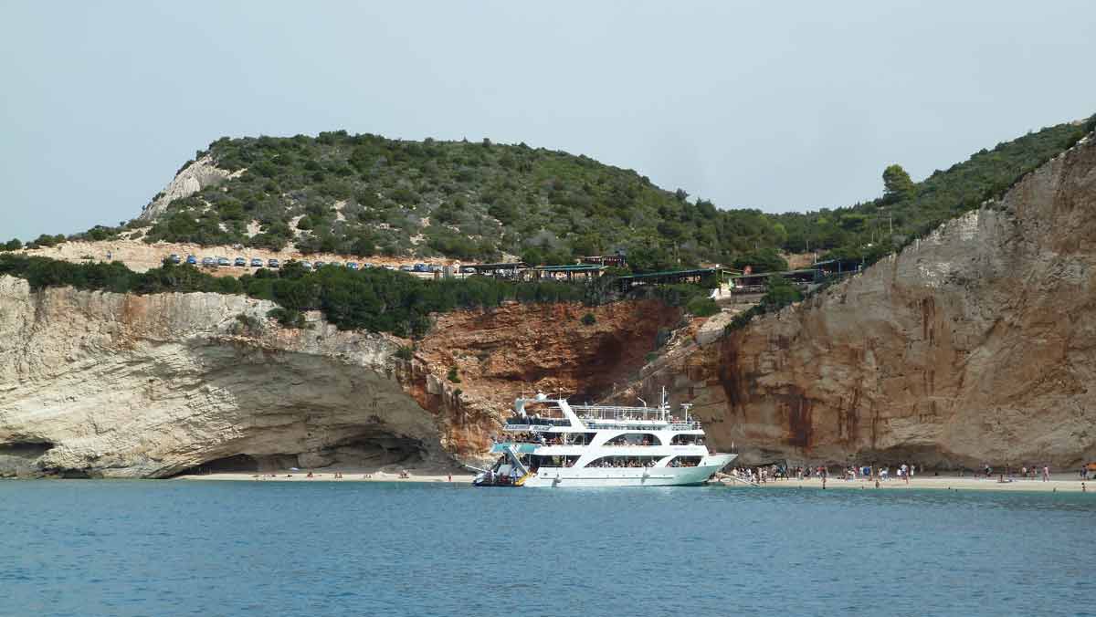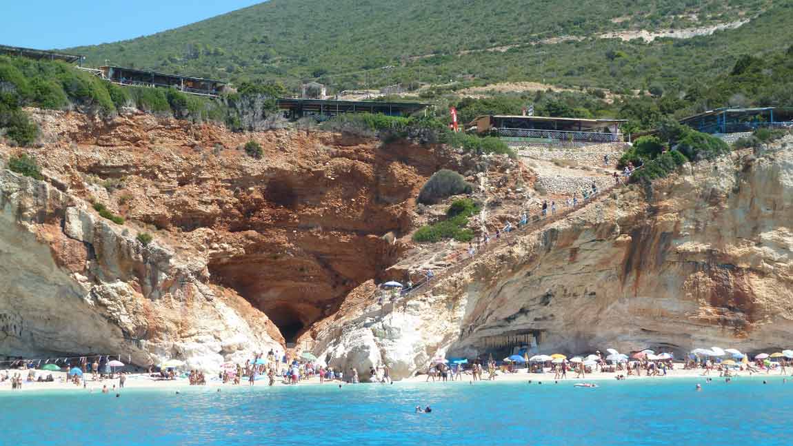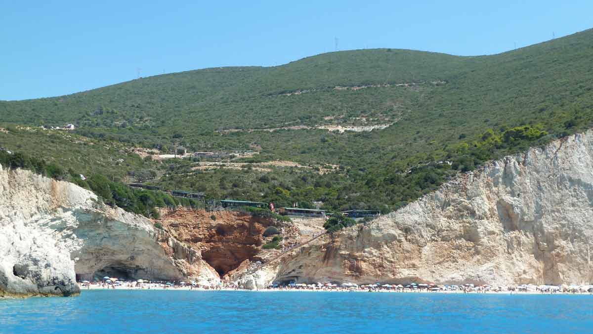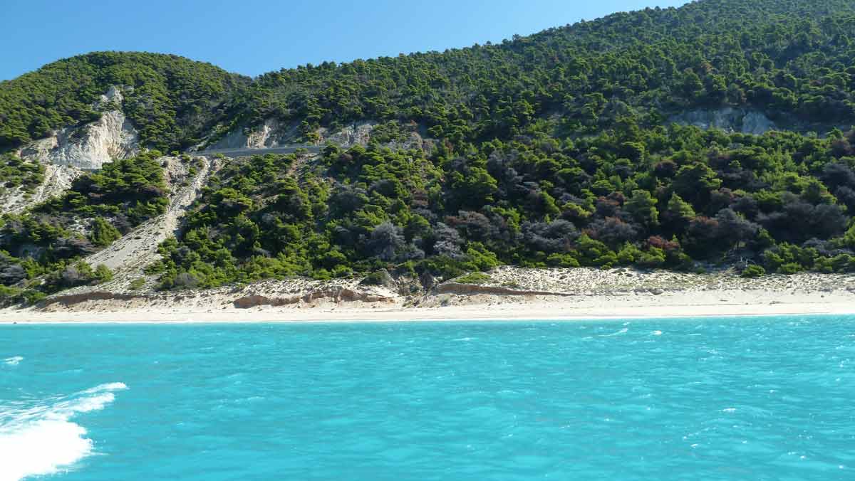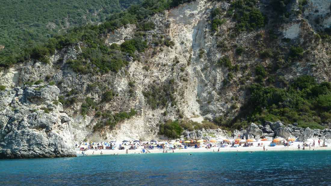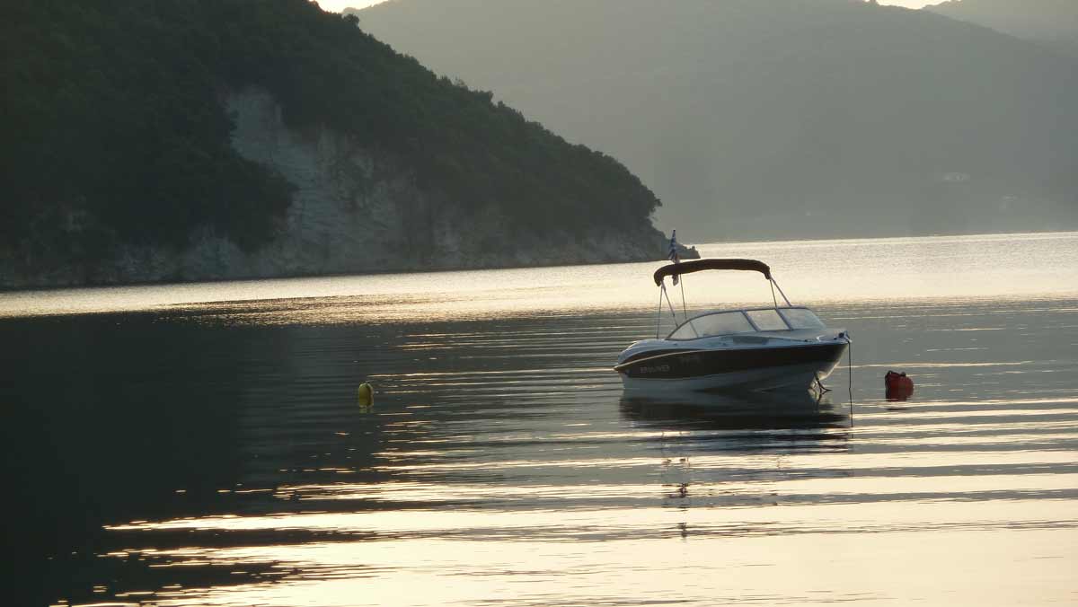 Today, probably for this season, made last boat trip around the island of Lefkas. The usual route, along Lefkada town and the old fort on the northern tip along the now no longer as busy beaches on the west coast. Upon return on our starting point, drunk a bottle of wine in Taverna Porto Spilia and then returned to the camp site. Again today a very smooth sea. Forecast for tomorrow: no change in weatherconditions. As it stands, we still have 3 days to go boating because the big boat is going out of the water Thursday.
