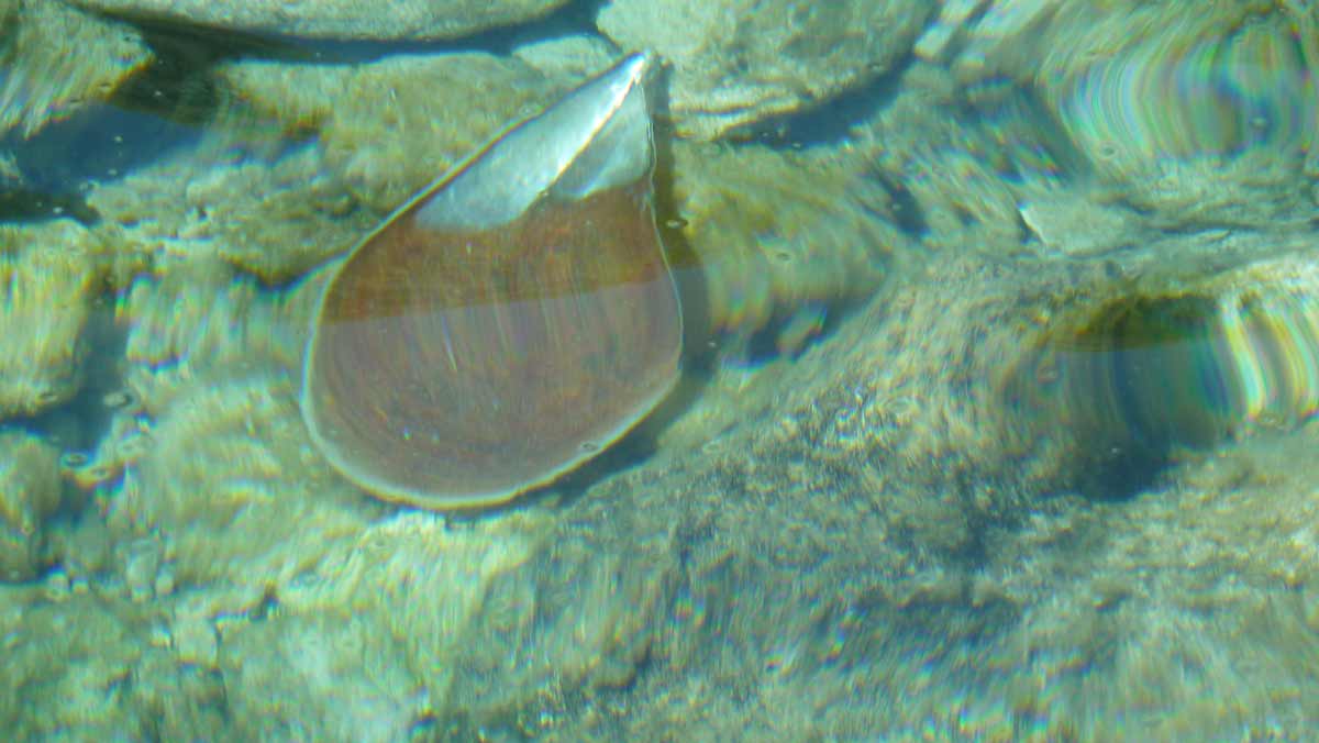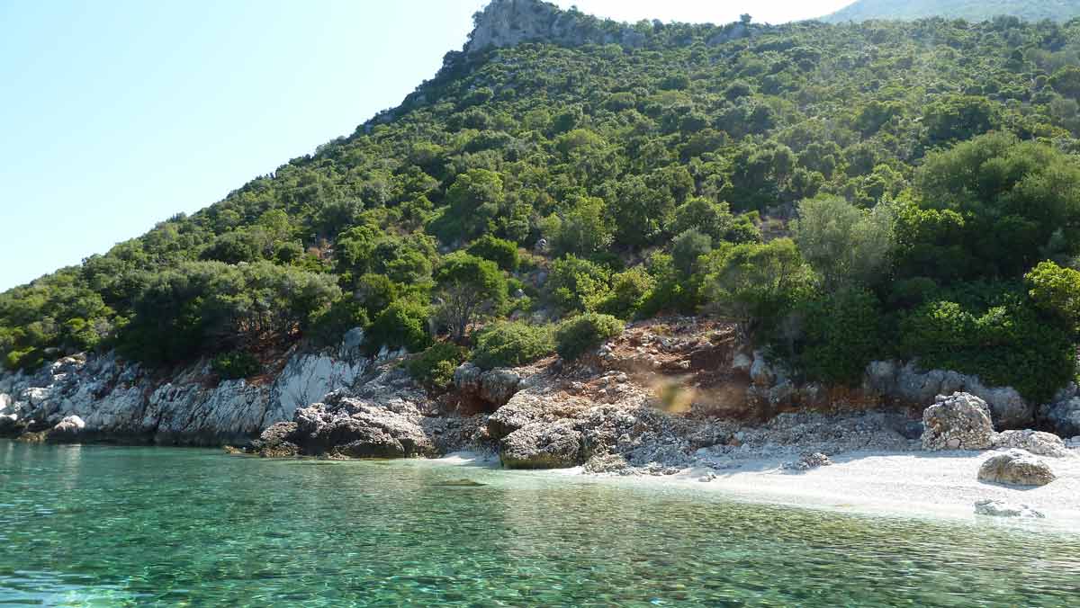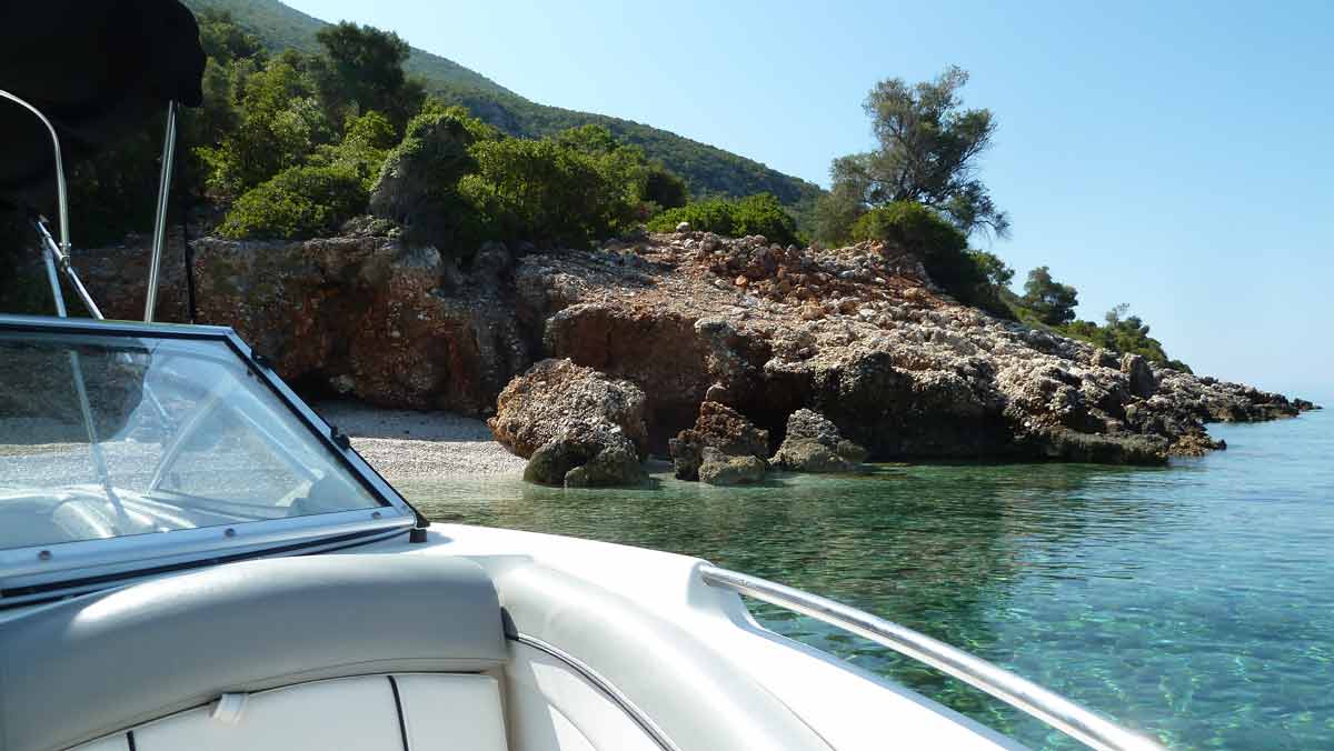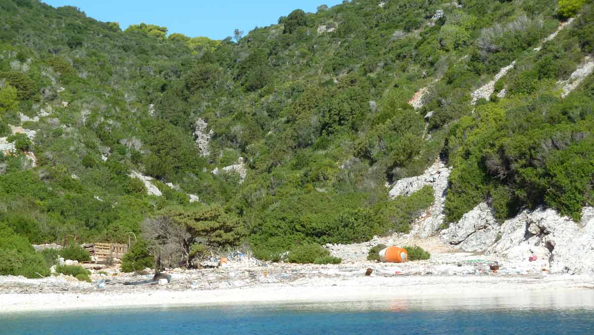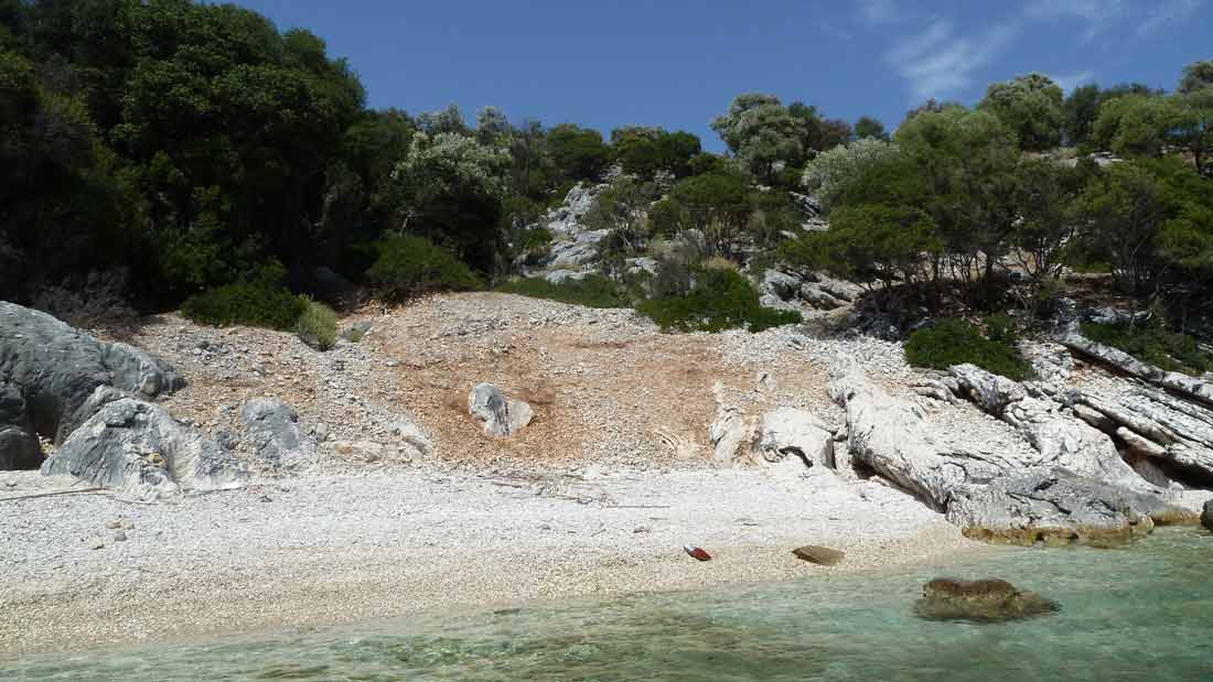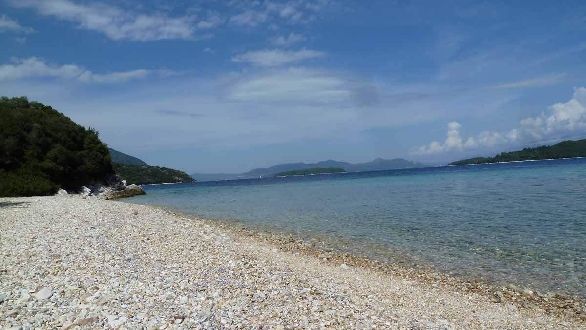Today a very hot day. Forecast said much wind; fact nearly no wind. Stayed with the boat at a little beach on the south-side of Meganissi were you can see a lot of sea-shells.
