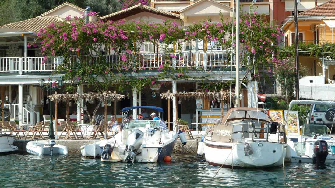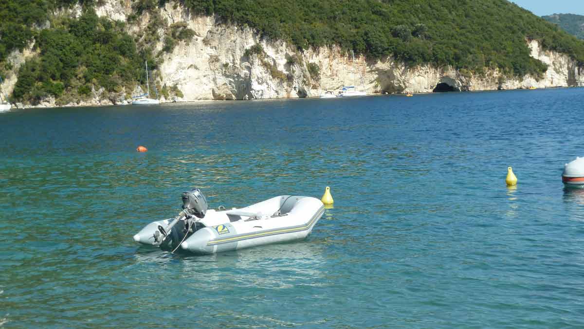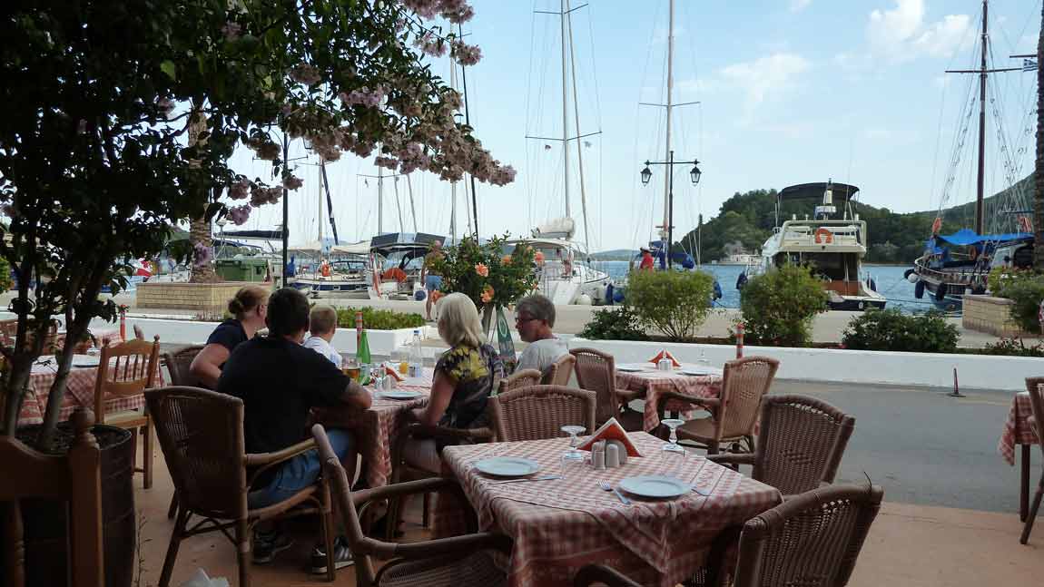 Today we tested the tender. The hole was fixed so we put the tender in the water, and a little bit later also de big boat. Started around 12 o'clock for a small trip along the east coast of Lefkas and around the island of Meganissi. Of course with a break in Taverna Porto Spilio at Meganissi. Tonight diner in Nidri at Taverna Panorama.