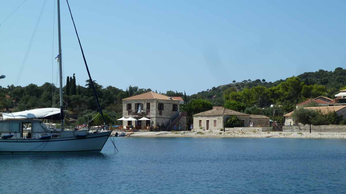 Today we visited the island of Kalamos, S-E of Lefkas. Just did over there near a pebble-beach what everyone should do in these temperatures; swimming, reading and mostly nothing.