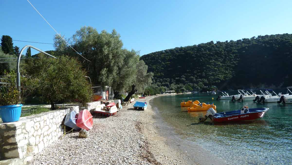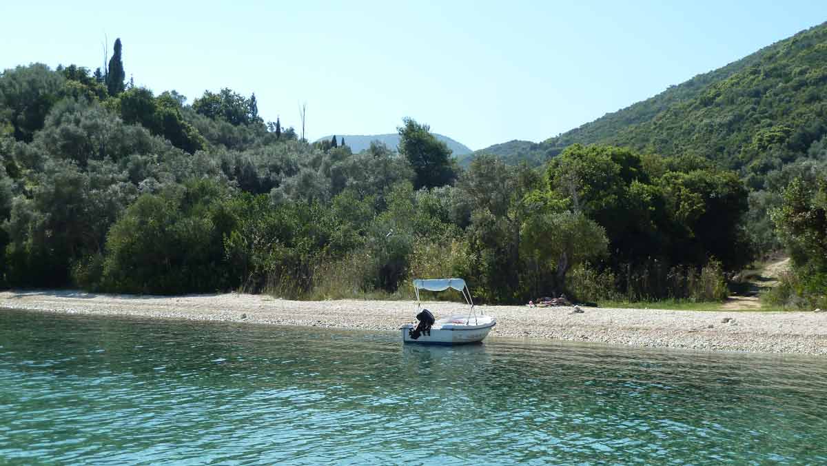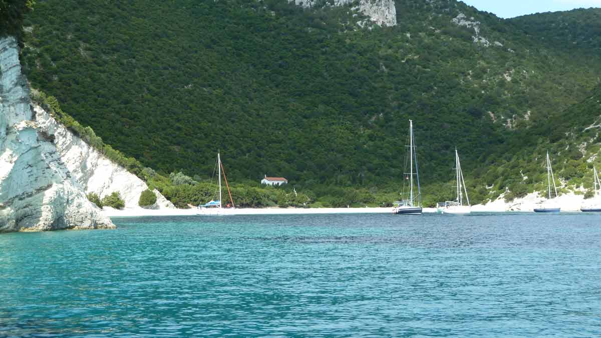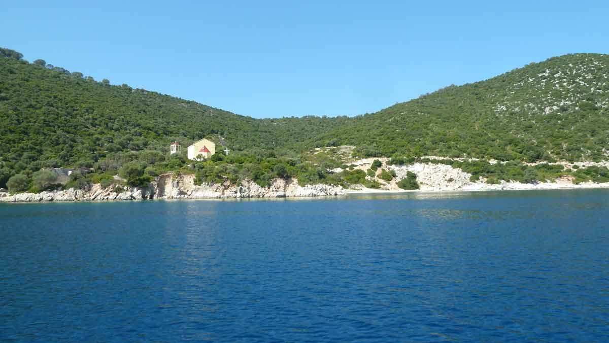 Beautiful weather and therefore with the boat to the island Atokos. There we had the beautiful Bay with the small church all for ourselves, which is unique. Then back to Lefkas along Meganissi while; anchored at the pebbeltjesstrand. Late lunch at Porto Splia on Meganissi; back to the campsite. The weather should stay the same the next days according to the weather forecast.
