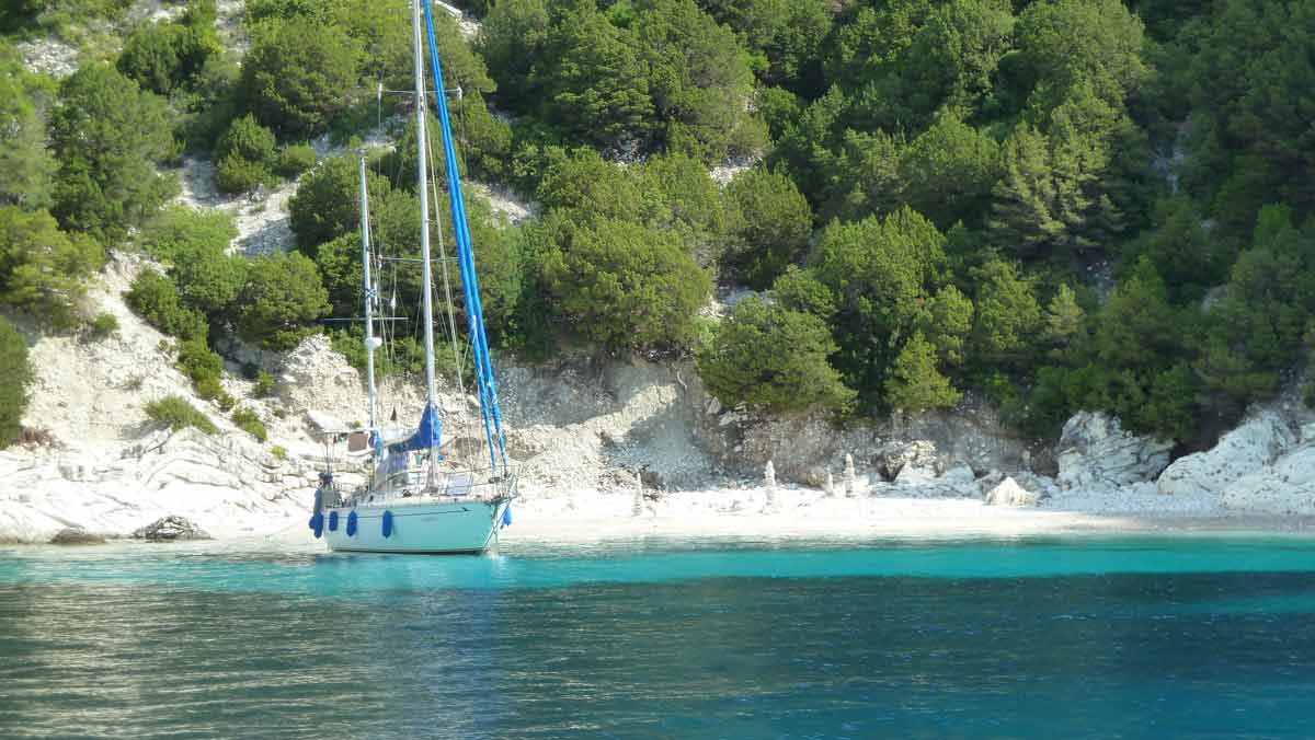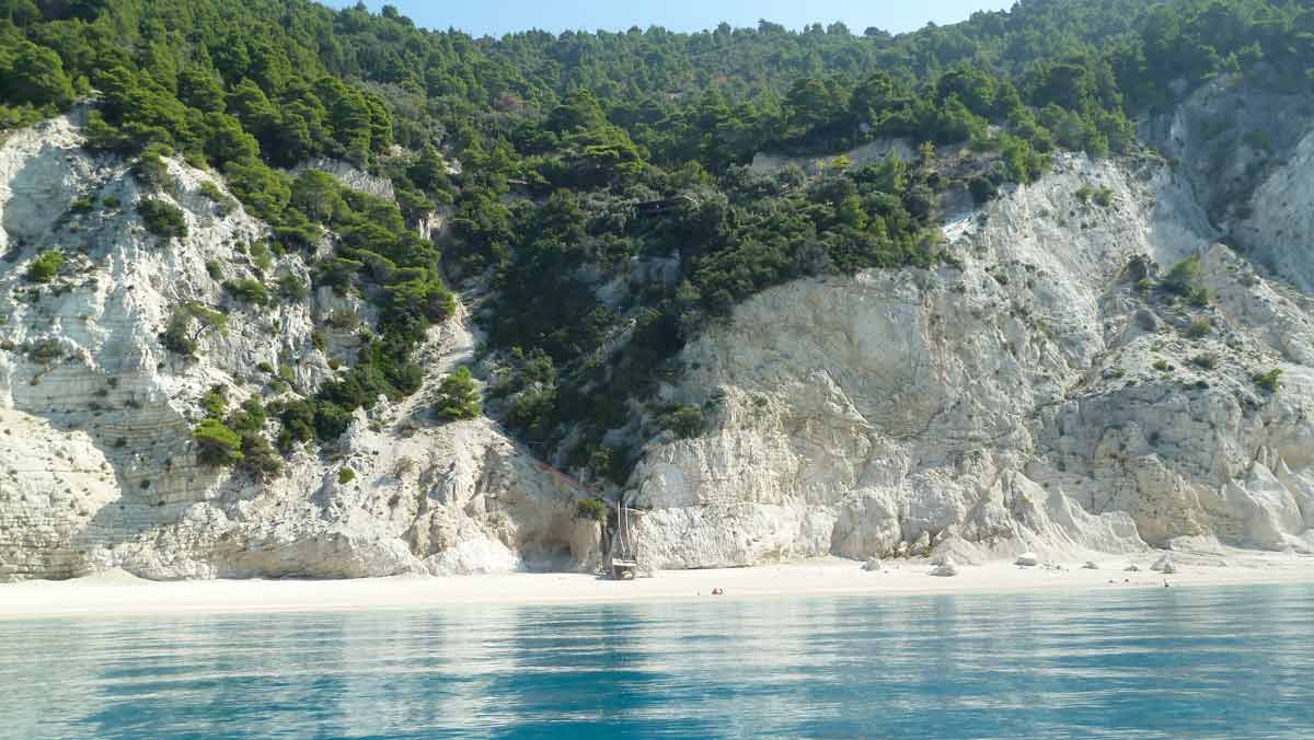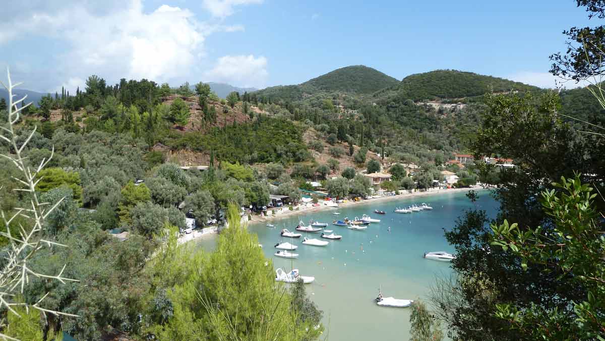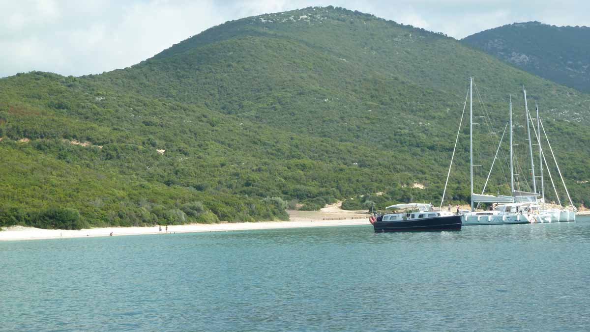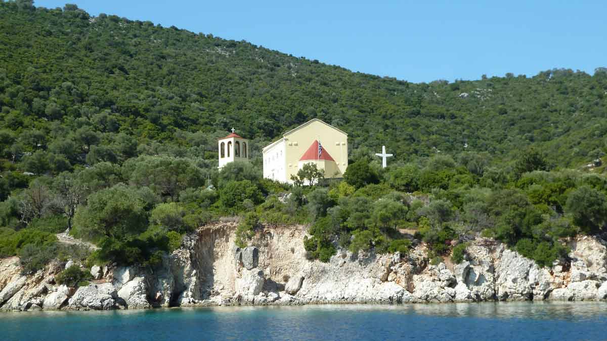 Beautiful weather and therefore with the boat to the island Atokos. There we had the beautiful Bay with the small church all for ourselves, which is unique. Then back to Lefkas along Meganissi while; anchored at the pebbeltjesstrand. Late lunch at Porto Splia on Meganissi; back to the campsite. The weather should stay the same the next days according to the weather forecast.