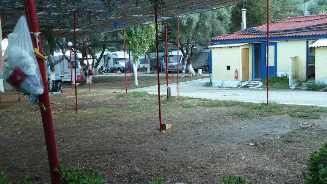 Na weer zo'n uitgebreid ontbijt in Hotel AAR (zomer 14035/14036) vertrokken naar onze eindbestemming, Camping Dessimi Beach, Vlycho, Lefkas (zomer 14037/14038). Daar om 12.00 uur aangekomen en hartelijk begroet door de hele familie Kavadas. Helaas was ons plekje niet beschikbaar maar had de baas een andere grote mooie plek voor ons. Die zou om 15.00 uur vrijkomen. Dus tot die tijd gezellig bij een Duits stel, die een plek direct aan zee hebben en hier ook al tientallen jaren komen, zitten wachten. Om 14.50 uur was de plek vrij en zijn wij alles gaan opbouwen. Rond 16.45 uur was alles opgebouwd en ingericht (zomer 14309). Het is nu 17.30 uur; wij gaan even douchen, want een tent opbouwen en inrichten is een erg inspannend en dus zeer warm werkje. Daarna rijden wij naar Nidri om daar te gaan eten. Morgen waarschijnlijk de boot in het water, maar dat kan ook wel overmorgen worden. Wij hebben de tijd !