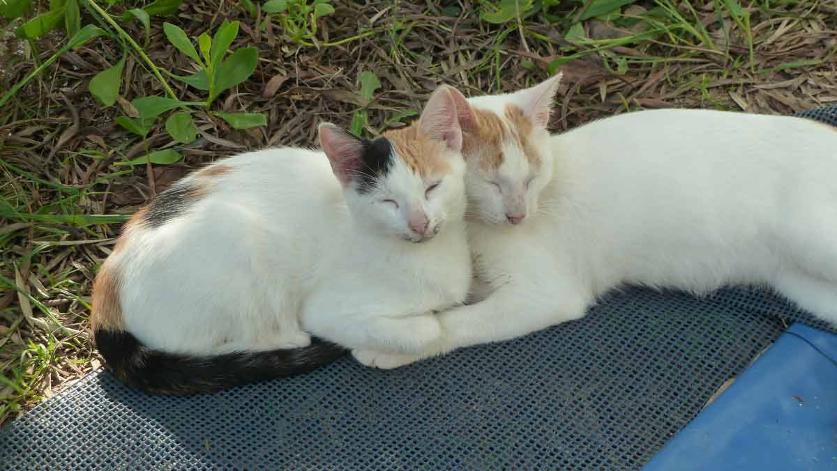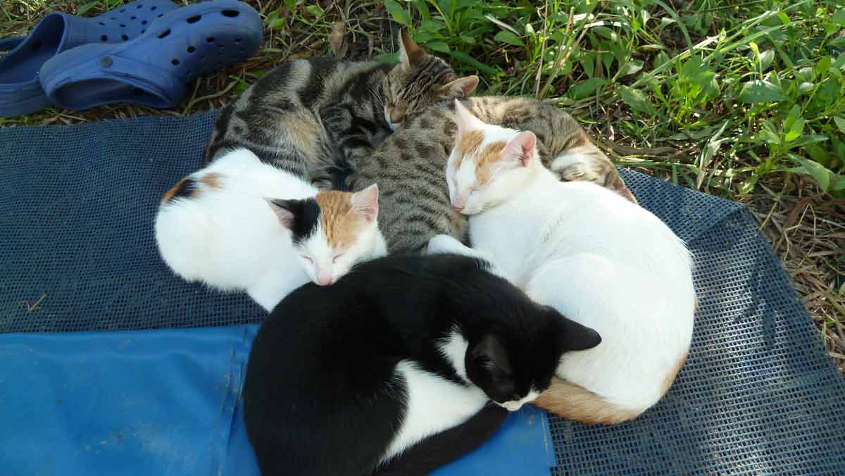 Er zijn nog 5 plekken bezet op de gehele camping dus ook de katten van de andere gedeeltes komen nu bij ons langs. Zoals deze moeder met kind (zomer 14205). Vandaag alleen even naar het pebbeltjesstrand gevaren. Daar een tijd liggen dobberen en vervolgens, net als de laatste dagen, naar Taverna Porto Spilia voor een flesje wijn en terug naar de camping waar wij de eerste schoonmaakwerkzaamheden zijn begonnen. Vanavond eten in Nidri bij Taverna Mamma Mia, die na woensdag als de Panorama (spontaan) sluit, wij verder op zijn aangewezen. Volgens de weersverwachting blijft het huidige weer nog minimaal 2 weken hetzelfde, dus wij kunnen alles rustig aan doen. Vertrek is op dit moment gepland voor zondag of maandag a.s.
