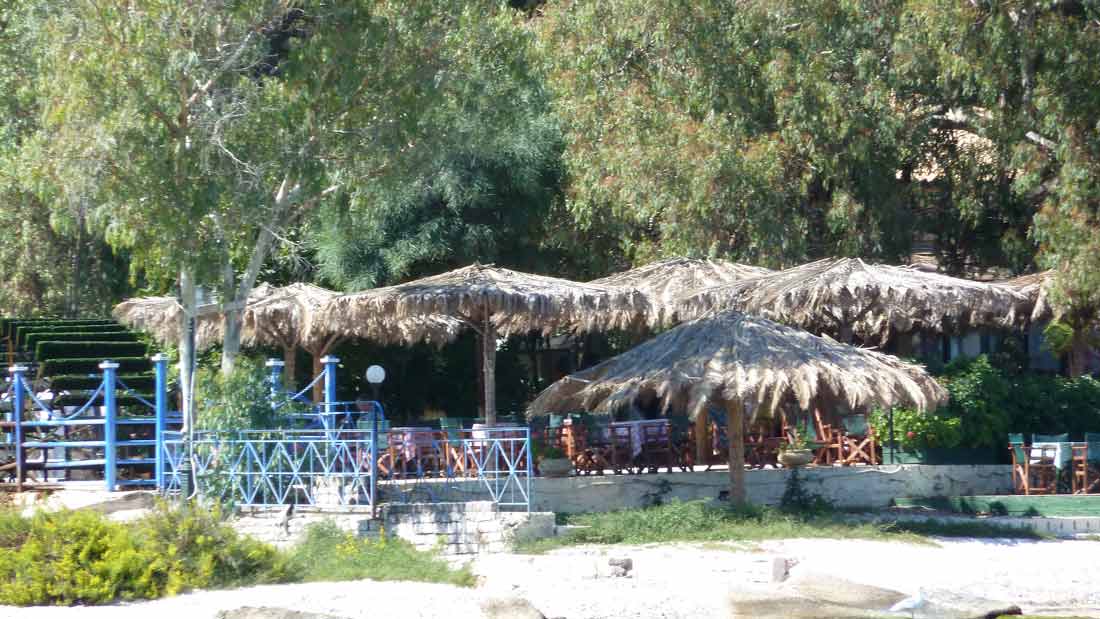 Vandaag alleen even naar het pebbeltjesstrand gevaren. Daar een tijd liggen dobberen en vervolgens, net als de laatste dagen, naar Taverna Porto Spilia voor een flesje wijn. Daar afscheid genomen van Panos en Babis, de eigenaren van de taverna, en hun medewerkers. Vervolgens terug naar de camping en vanavond eten in Nidri bij Taverna Panorama, die vanaf morgen ook gesloten is. Morgen rond 11.00 uur gaat de grote boot het water uit en de trailer op en begint het vervelendste deel van deze vakantie, de boot schoonmaken. Zoals het er nu naar uitziet gaan wij maandag vertrekken.