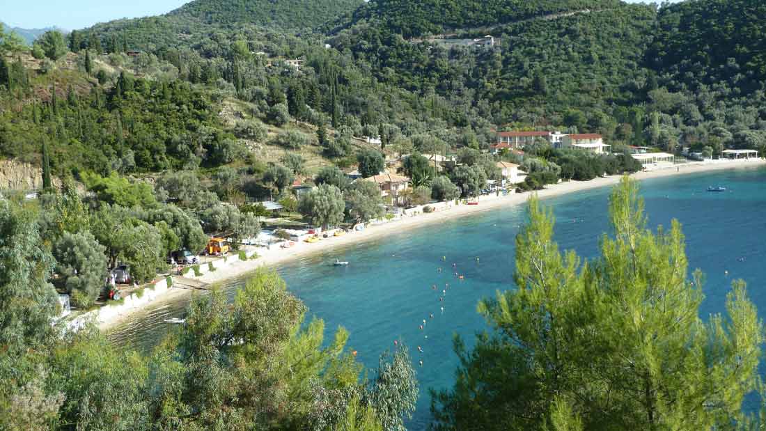 Vanochtend grondzeilen die voor de tent liggen en de luifel schoongemaakt en ingepakt. Daarna een laatste wandeling voor dit seizoen naar het pebbeltjesstrand, waarbij je onderweg altijd weer fraai uitzicht hebt over de Baai van Vlycho met op de achtergrond de hoogste bergen van Lefkas (zomer 14220). Na terugkeer de auto gewassen. Wij zitten er nu wel wat "kaal" bij (zomer 14221) maar dat scheelt inn ieder geval morgen weer werk. Vanavond uit eten en afscheid nemen van Taverna Mamma Mia. Morgen wachten tot alles droog is, inpakken en naar wij hopen ergens rond 12.30 uur vertrekken.