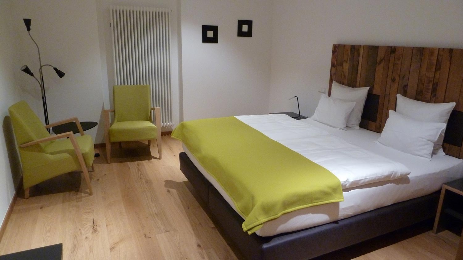 San Lorenzo di Sebato en daar de, reeds gereserveerde, kamer genomen in Gasthof Traube (febr 16077 t/m 16079). Kamer is op 3e etage en het is een oud gebouw dus de klim