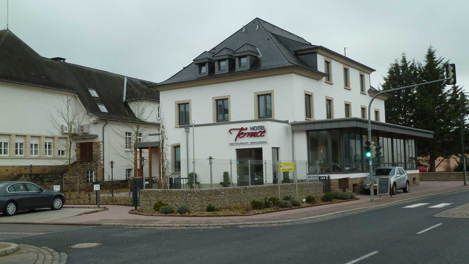 Both hotels also closed. Along the secundairy road from North to South I saw in the town of Bettendorf (aptly named) a nice little hotel what was open, Hotel Terrace
