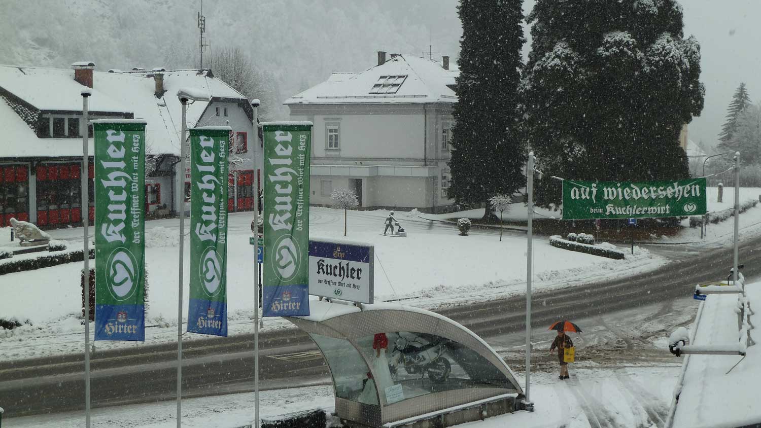 and on the last part of the trip even some snow flakes came down. Just before half 5 arrived at the final destination in Gasthof KuchlerWirt. Unfortunately, the weather