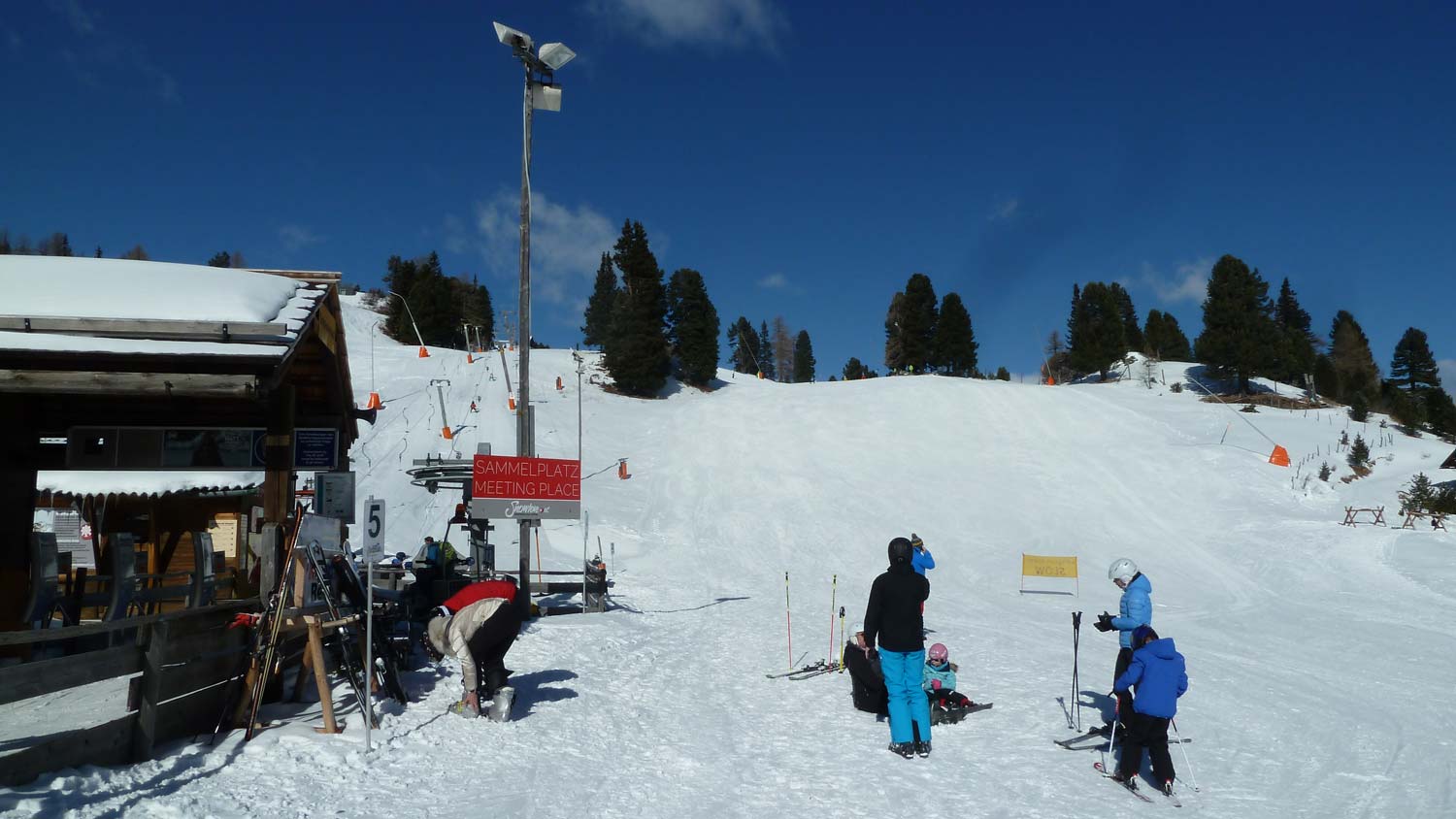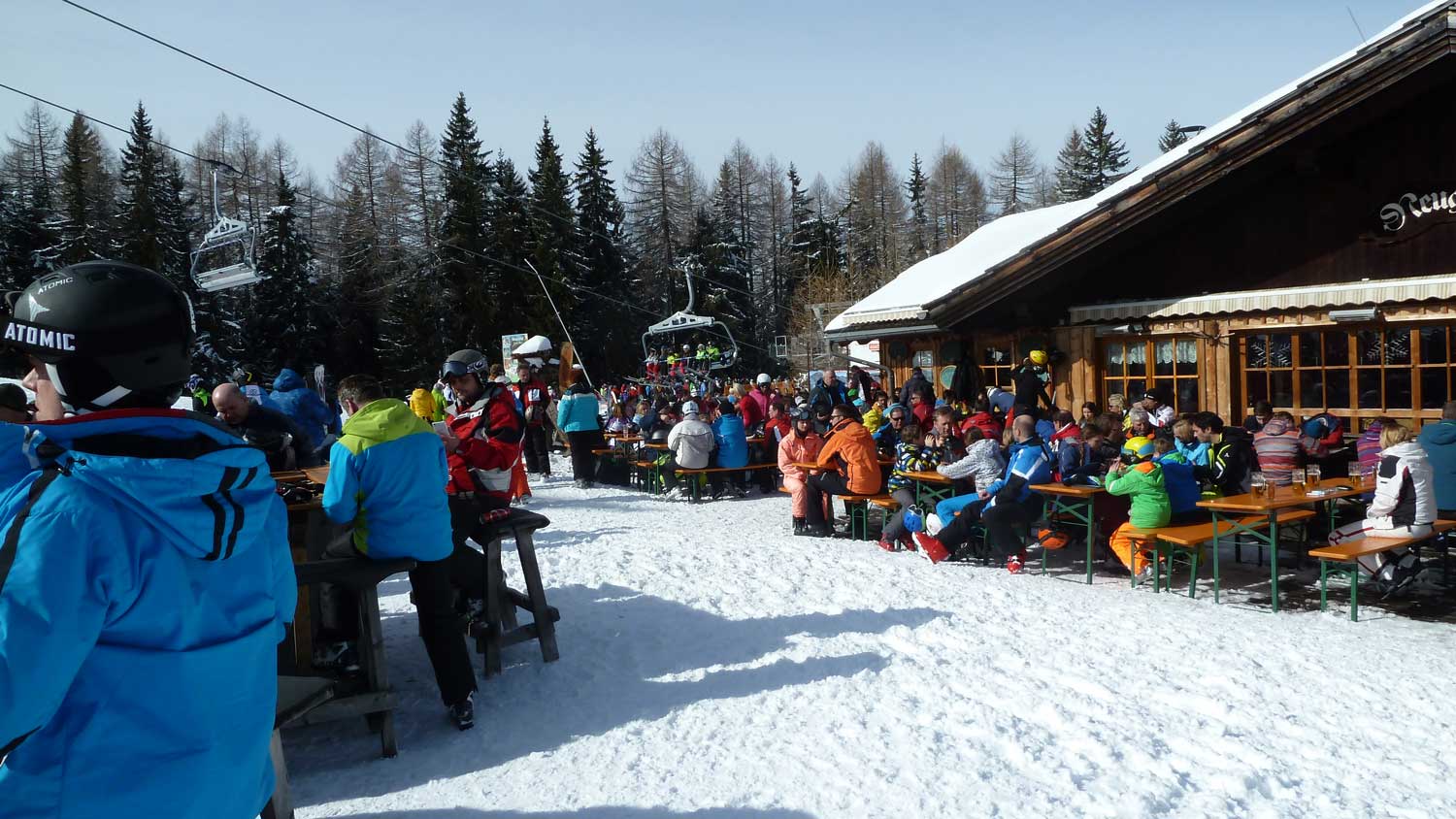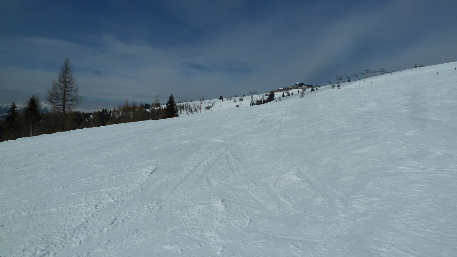 That way it stays snowfree. Then drove to the Klösterleliften for the first skiing on the Gerlitzen. Also over there rather busy, both on the slopes and at the Neugartenstüberl.