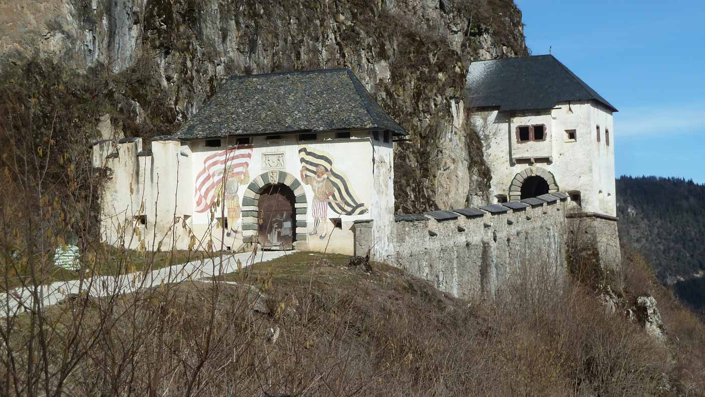 oude gebouwen (febr 16066/16067). Heel dominant zichtbaar als je Bruneck binnenrijdt is het Bisschoppelijk Kasteel uit 1250 (febr16068/16069). Het gerestaureerde kasteel kun je
