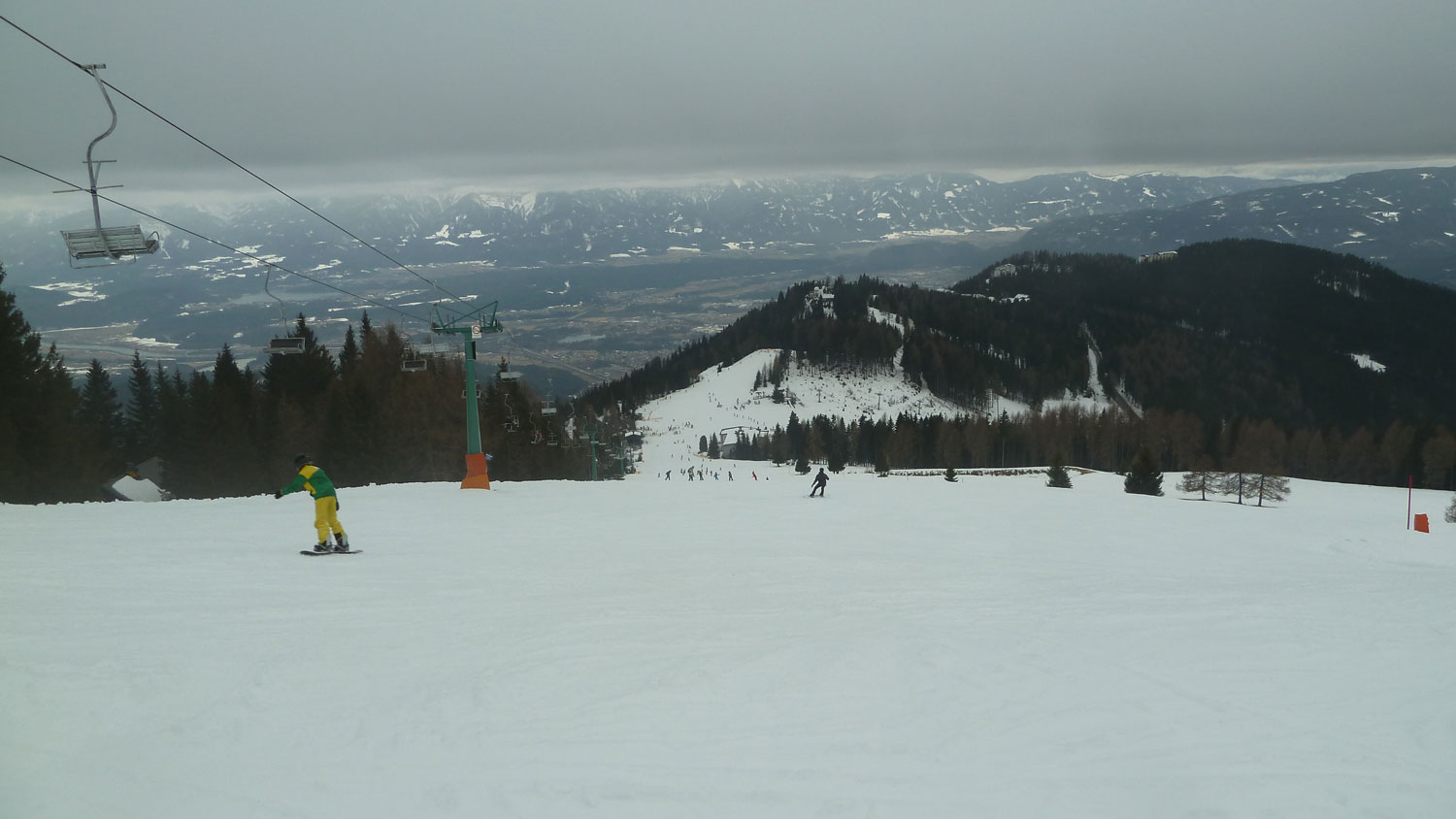 Skiëd a number of slopes, including the Birkenhofpiste with a beautiful view of the Lake Ossiach and around 12:30 pm went to the Neugartestüberl. As I sat there