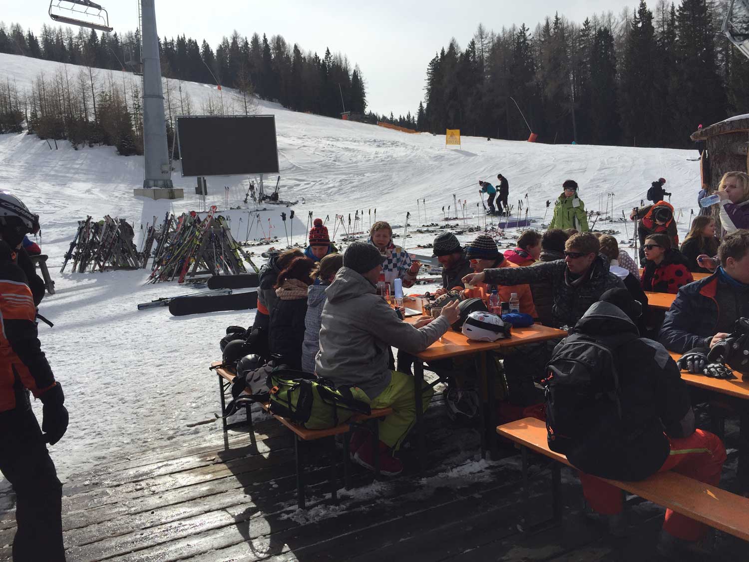 perfect. Aantal rondjes geskiëd, o.a. de Birkenhofpiste met fraai gezicht op de Ossiachersee (febr16015) en rond 12.30 uur naar Neugartestüberl. Terwijl ik daar zat begon het