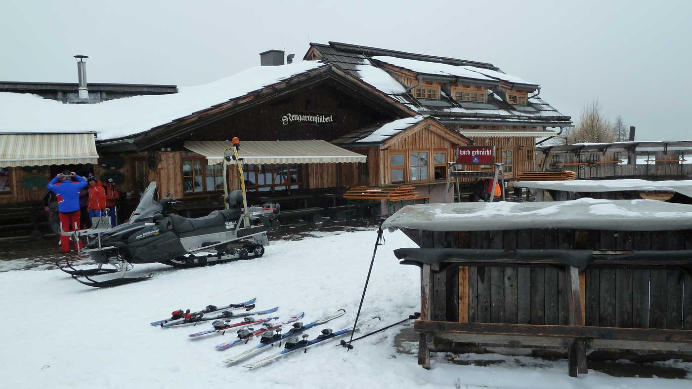 Weinig tot geen wind en later op de middag nog een voorzichtig zonnetje; uitstekende pistes. Dus, met een pauze in de Neugartenstüberl, tot 16.00 uur volgehouden.