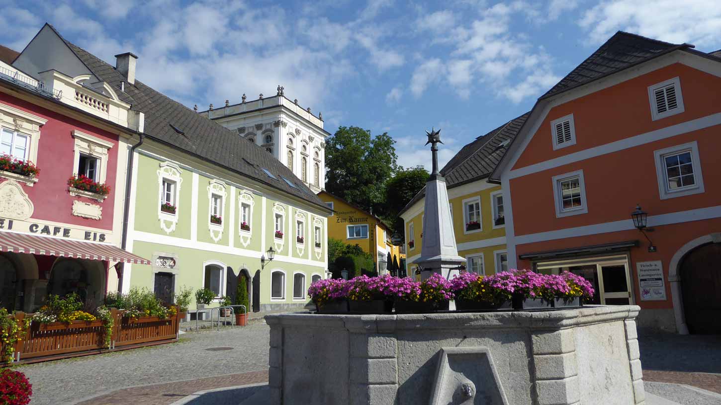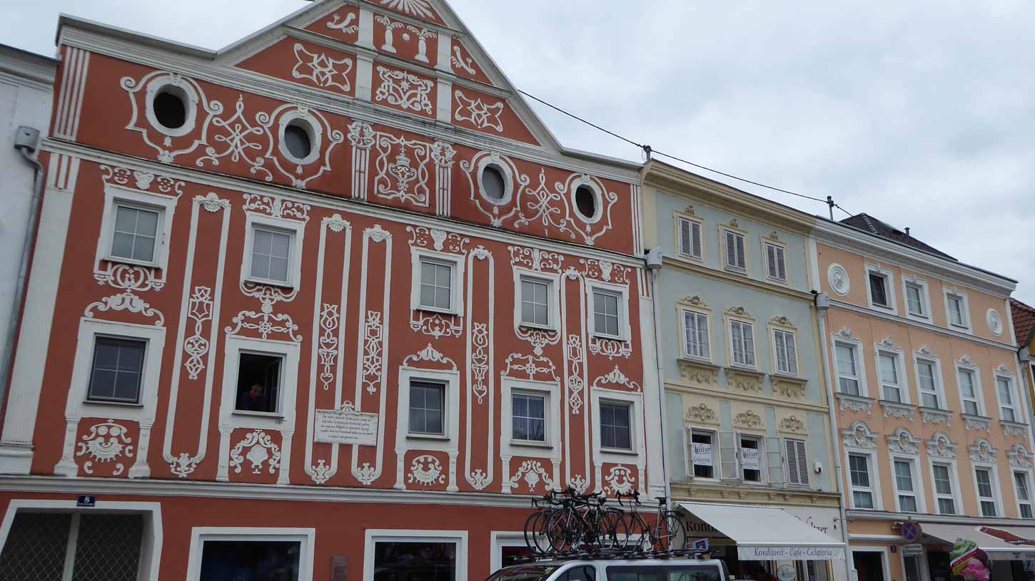 Aschach aan de Donau. Alle huizen langs de oever van de Donau hier stammen uit de 13e tot 15e eeuw (18055/056). Vandaar verder gereden naar Pleschingersee (18057) bij Linz.
