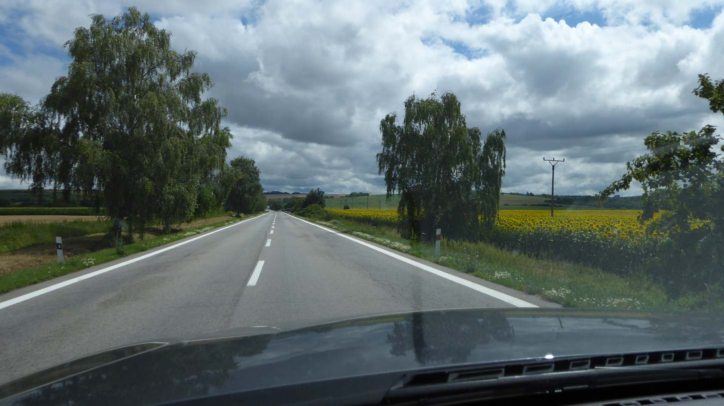 Bij Frankfurt de autobahn verlaten en verder binnendoor gereden. Vanaf Frankfurt ook lichte regenval. In Nederland weet men, gezien de reacties, al niet meer hoe regen er uitziet.