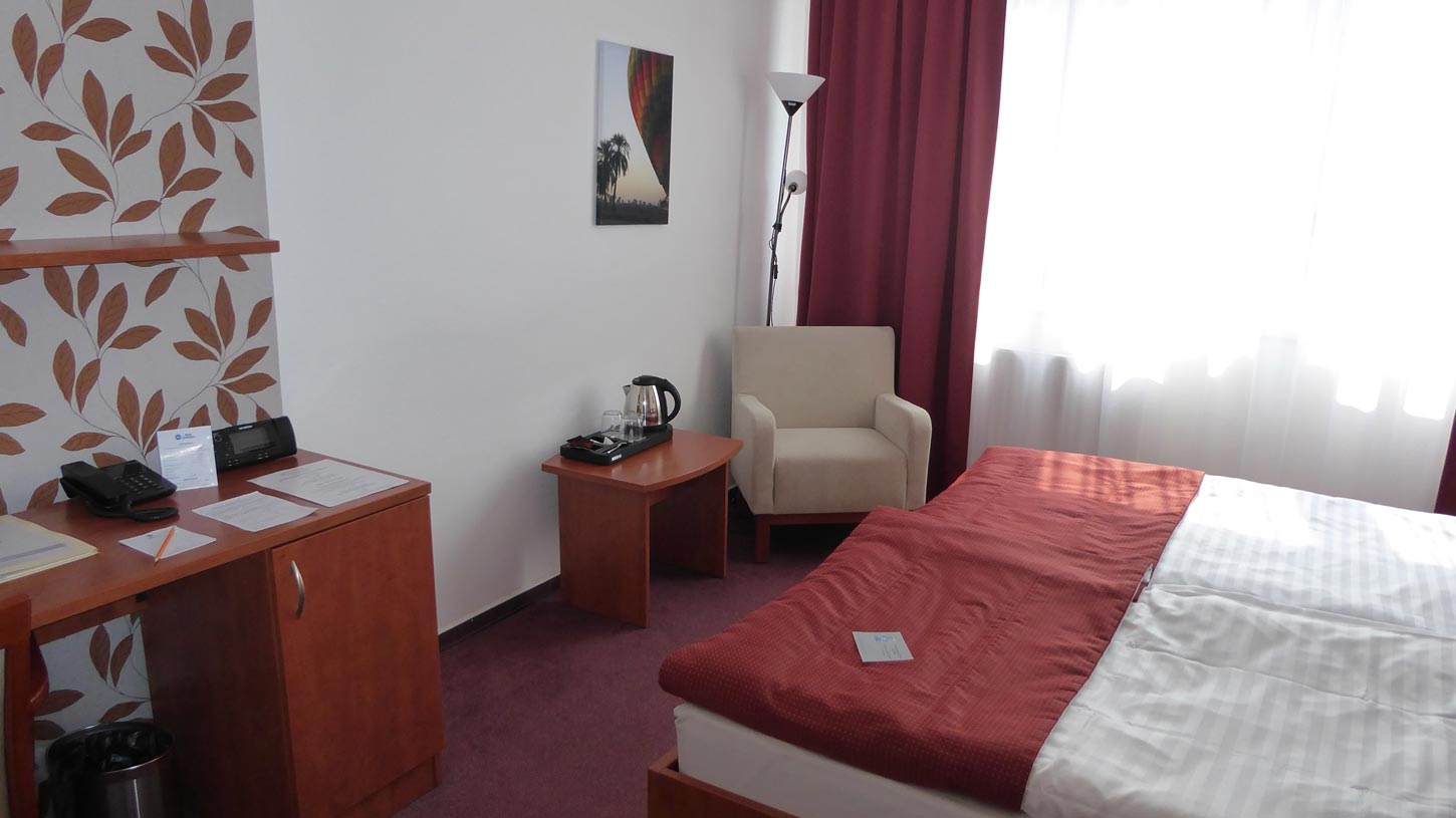 dag aan een totaal verkeersinfarct lijdt, naar Trnava gereden waar ik overnacht in Hotel Spectrum (18083 t/m 086). Helaas heeft het restaurant niets van rundvlees