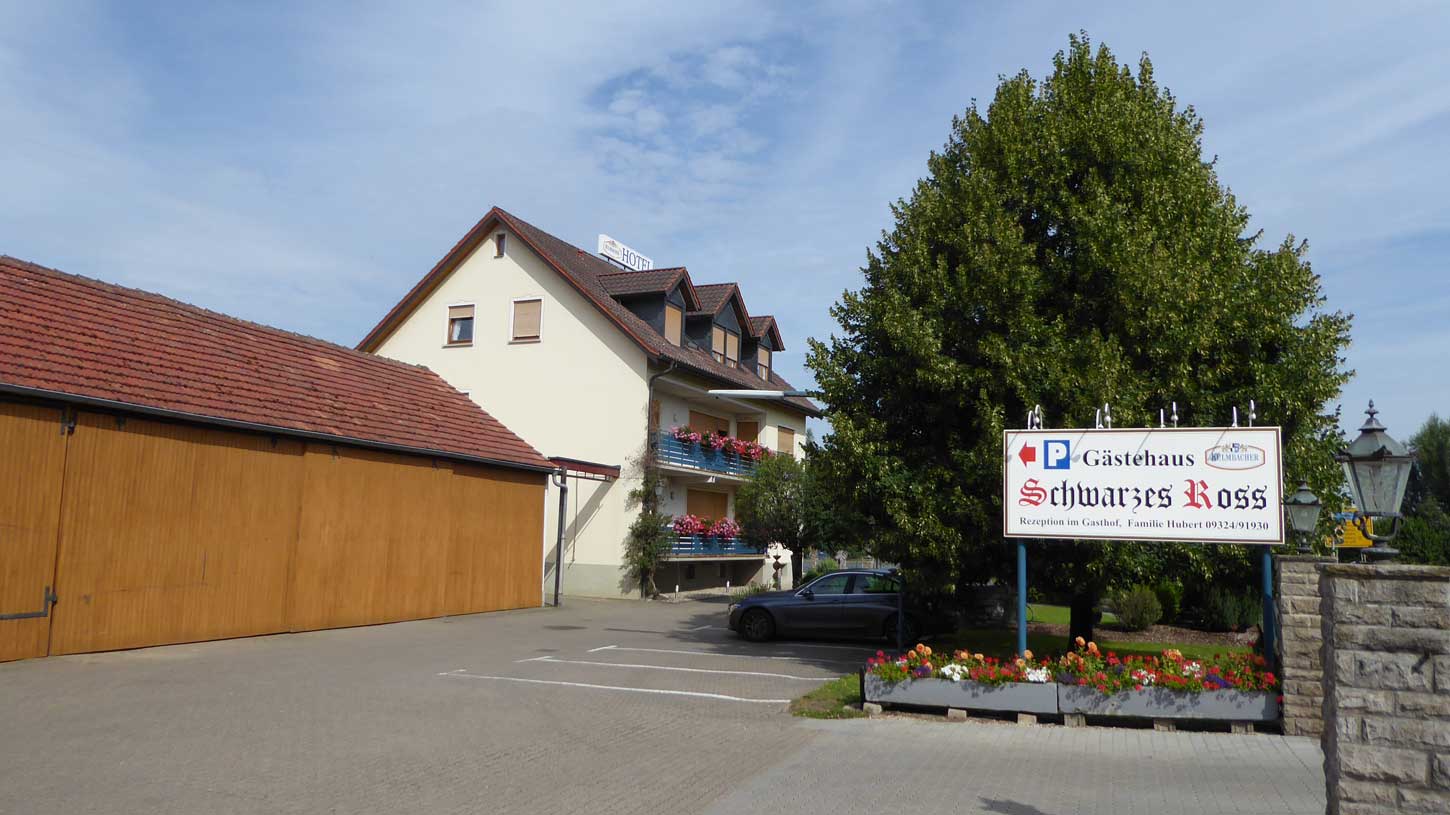Heute bleibe ich im Gasthof Schwarzes Ross (18127)0 Heute Nacht hat es ein wenig geregnet, denn auf dem Auto gab es tropfen. Aber heute viel Sonne und sehr warm. Zuerst