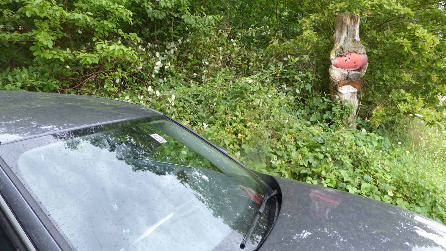 Daarom een foto van de auto die nat is van de regen (18133). Door het stuk snelweg en omdat het daarna ging regenen alleen maar rustig verder gereden tot Wallendorf, waar ik al