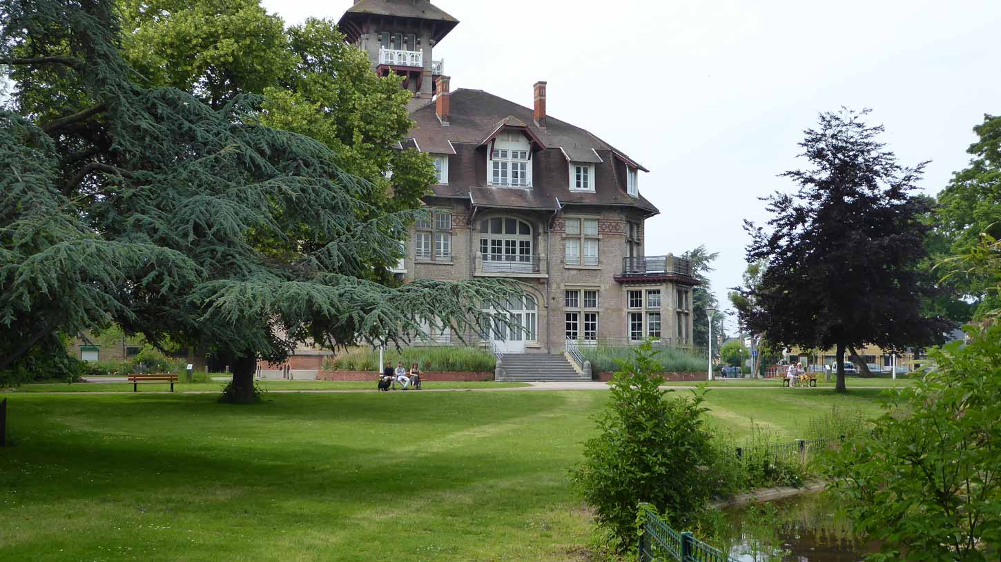 gelukkig niet zo heet was als elders. Aan de buitenrand van Duinkerke dit statige herenhuis (003)gezien met een leuk park er om heen. Duinkerke zelf vond ik niet