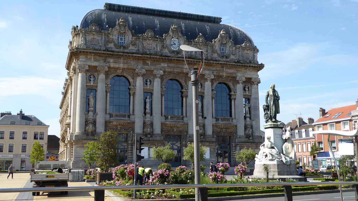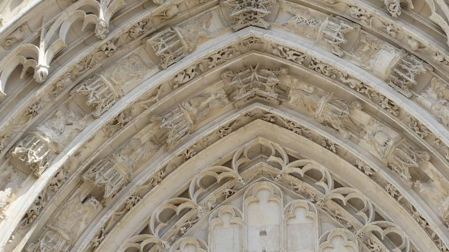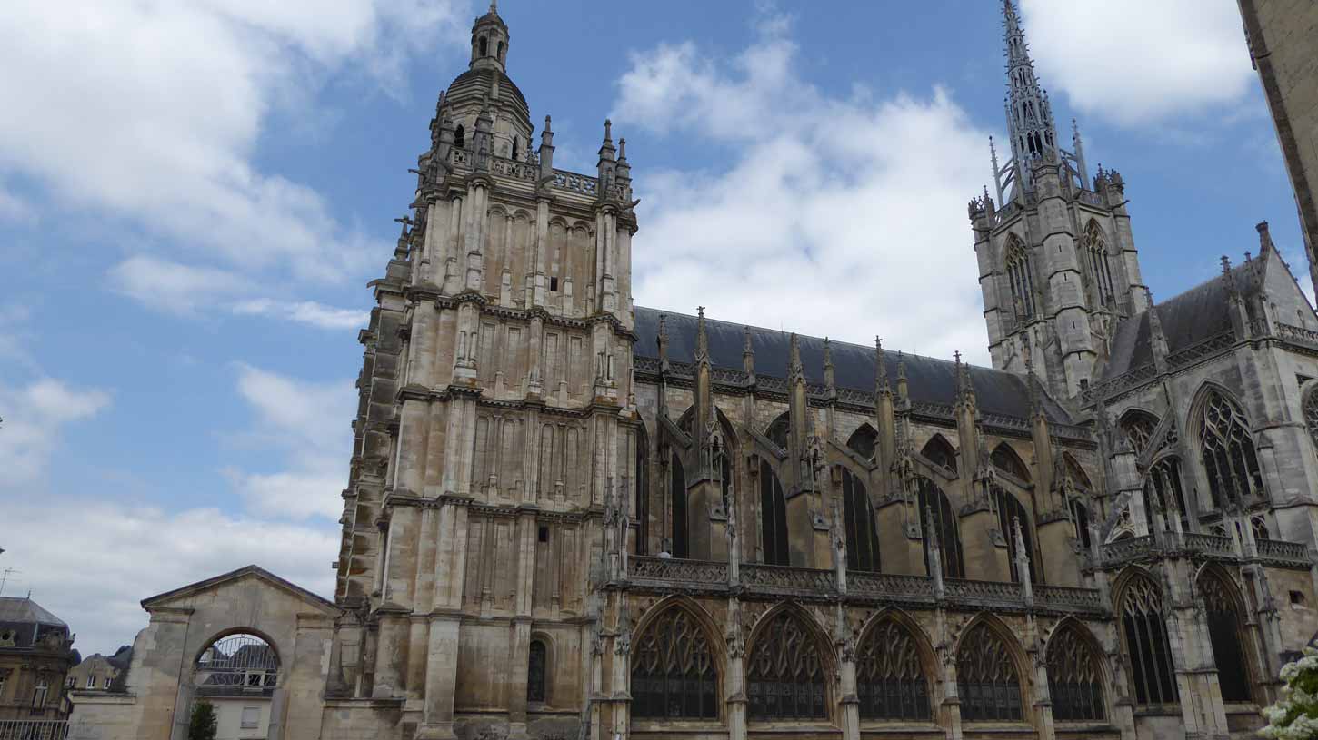 Abbeville gereden. Buiten de Sint-Wulframkerk, een kapittelkerk in flamboyante gotische stijl gebouwd tussen 1488 en 1539 (046 t/m 051) en de Belfort (klokkentoren)