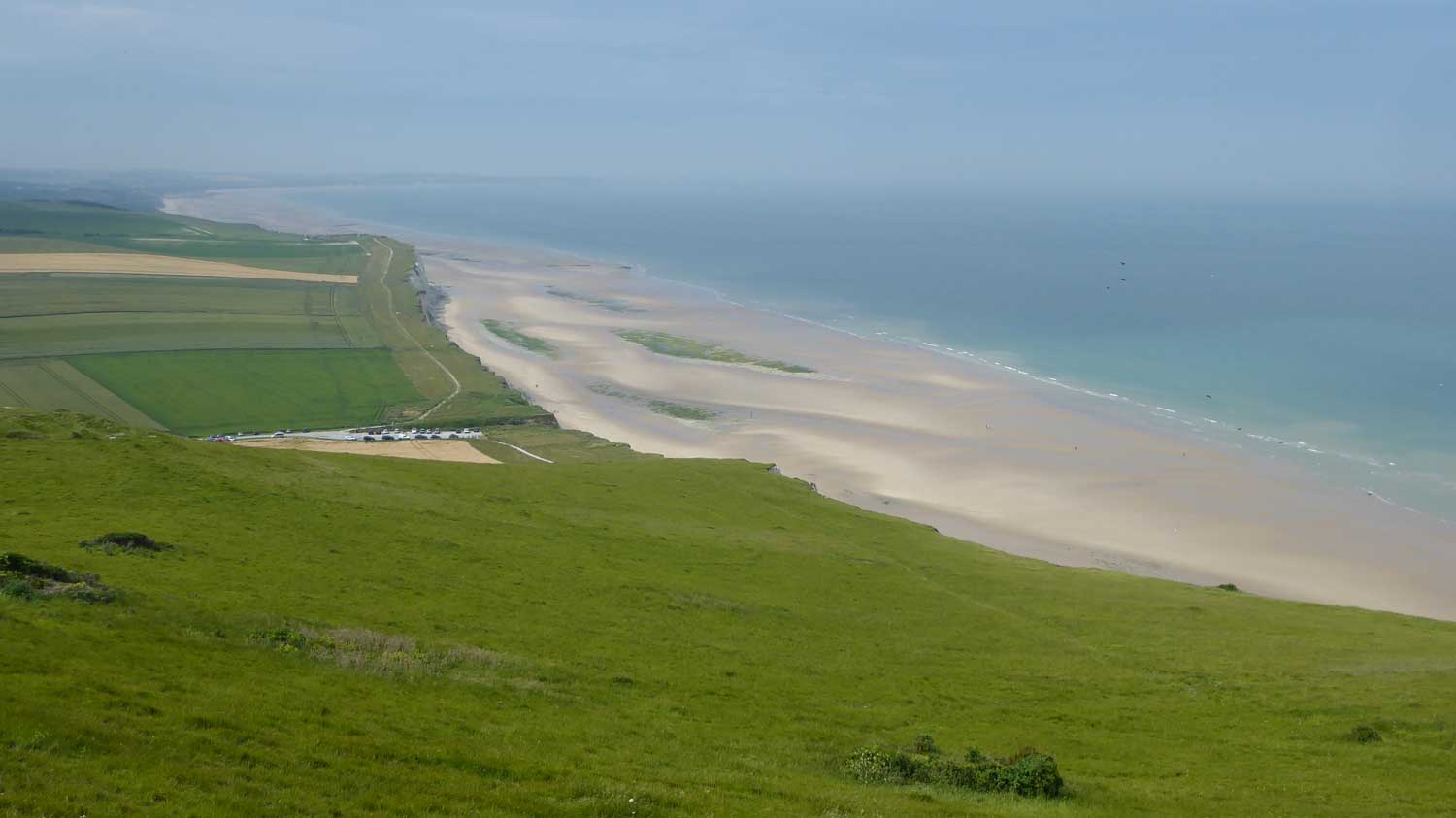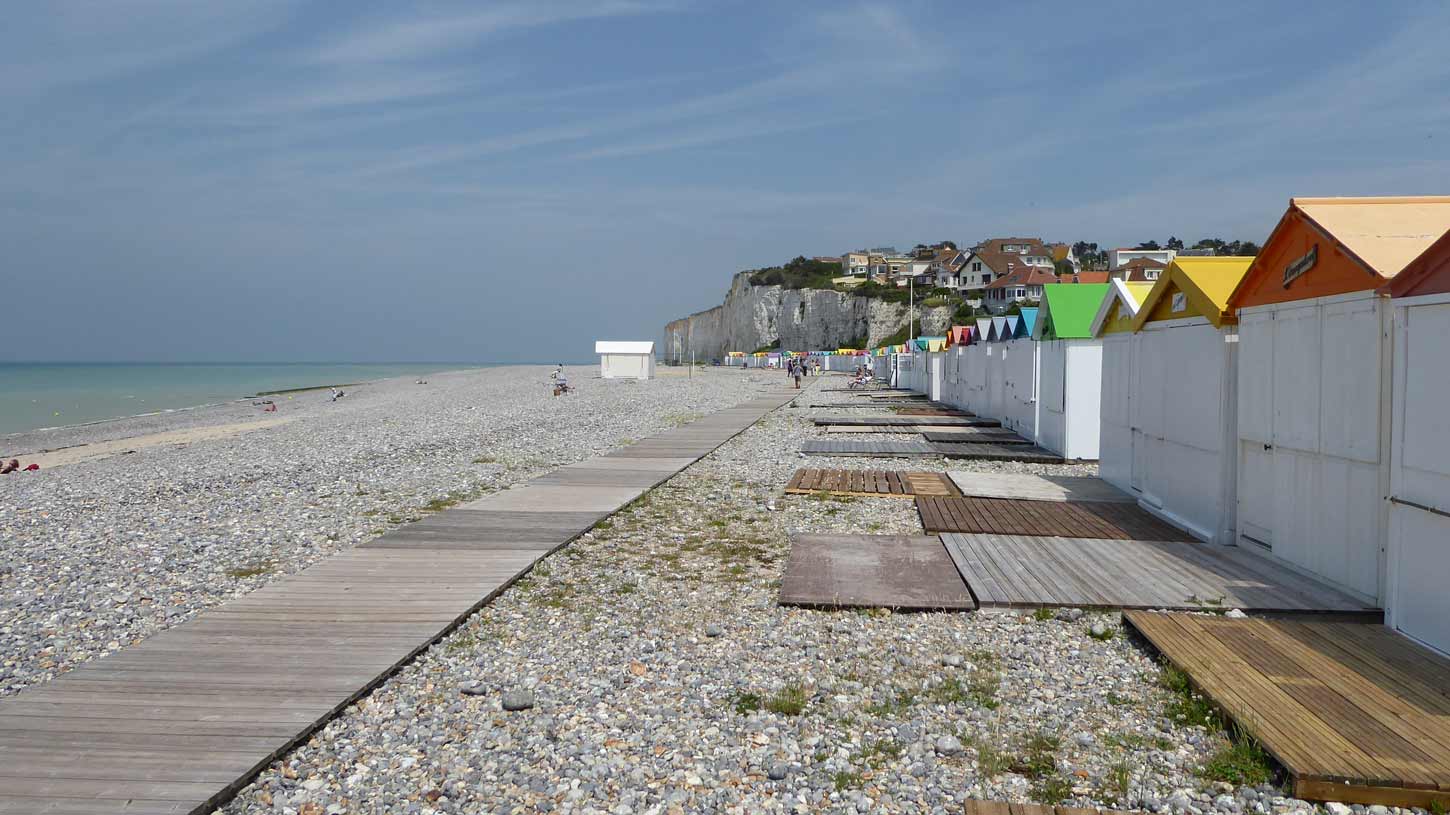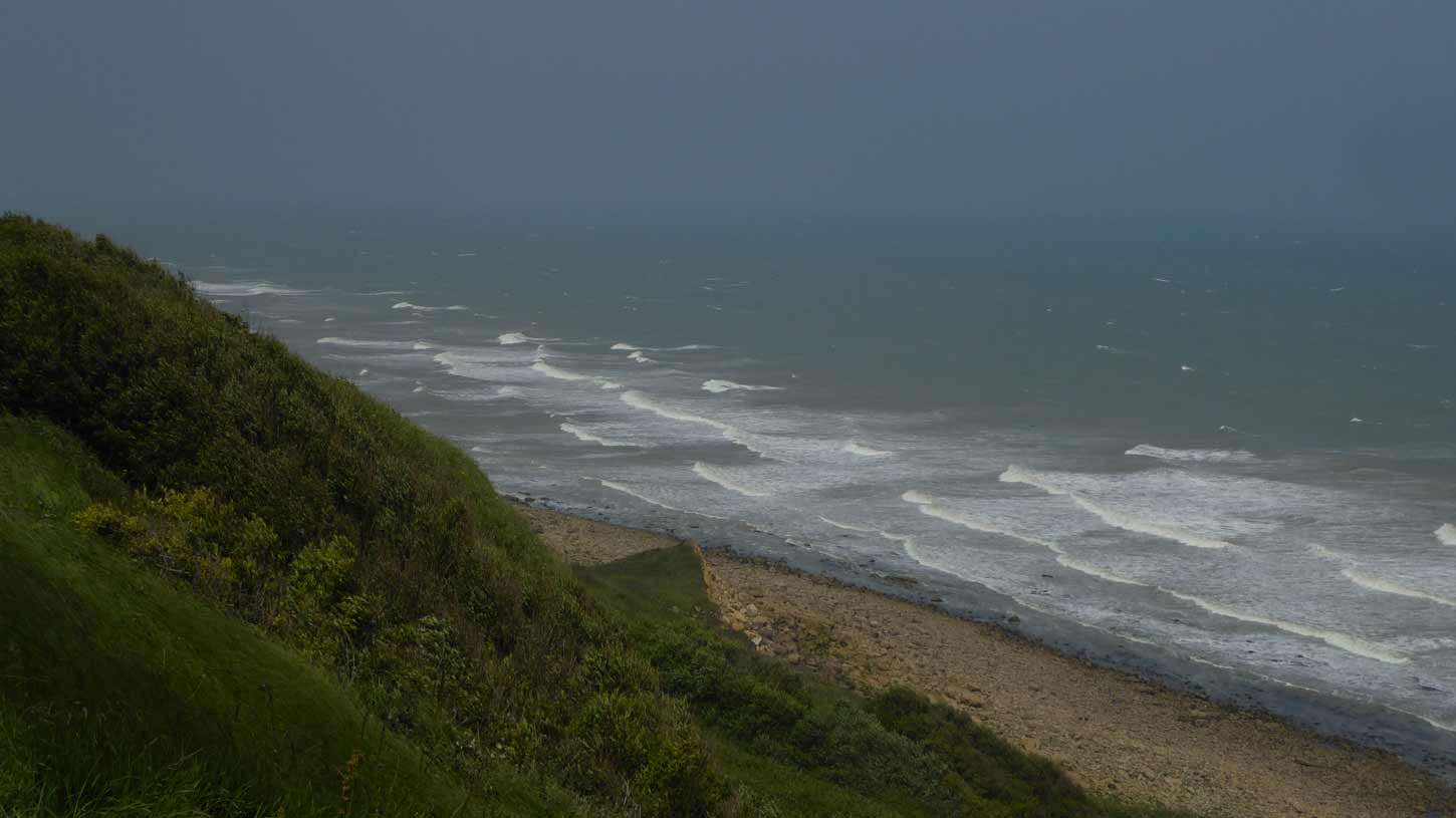 steeds hangt. En dat is inderdaad het geval (098/099). Vandaar naar de zuidkant van Normandi gereden en en klein stukje gelopen op het strand van Hattainville (100).