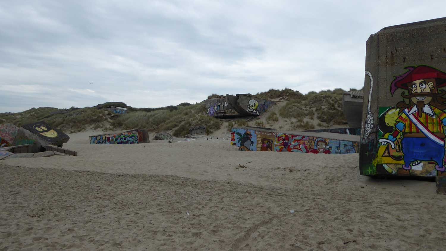 Sehr viel zu sehen und auch gem dlich (022 t/m 036). N chster Halt war der Strand mit seinen vielen bemalten Bunkern in Berck (037). Von Berck ins Landesinnere,