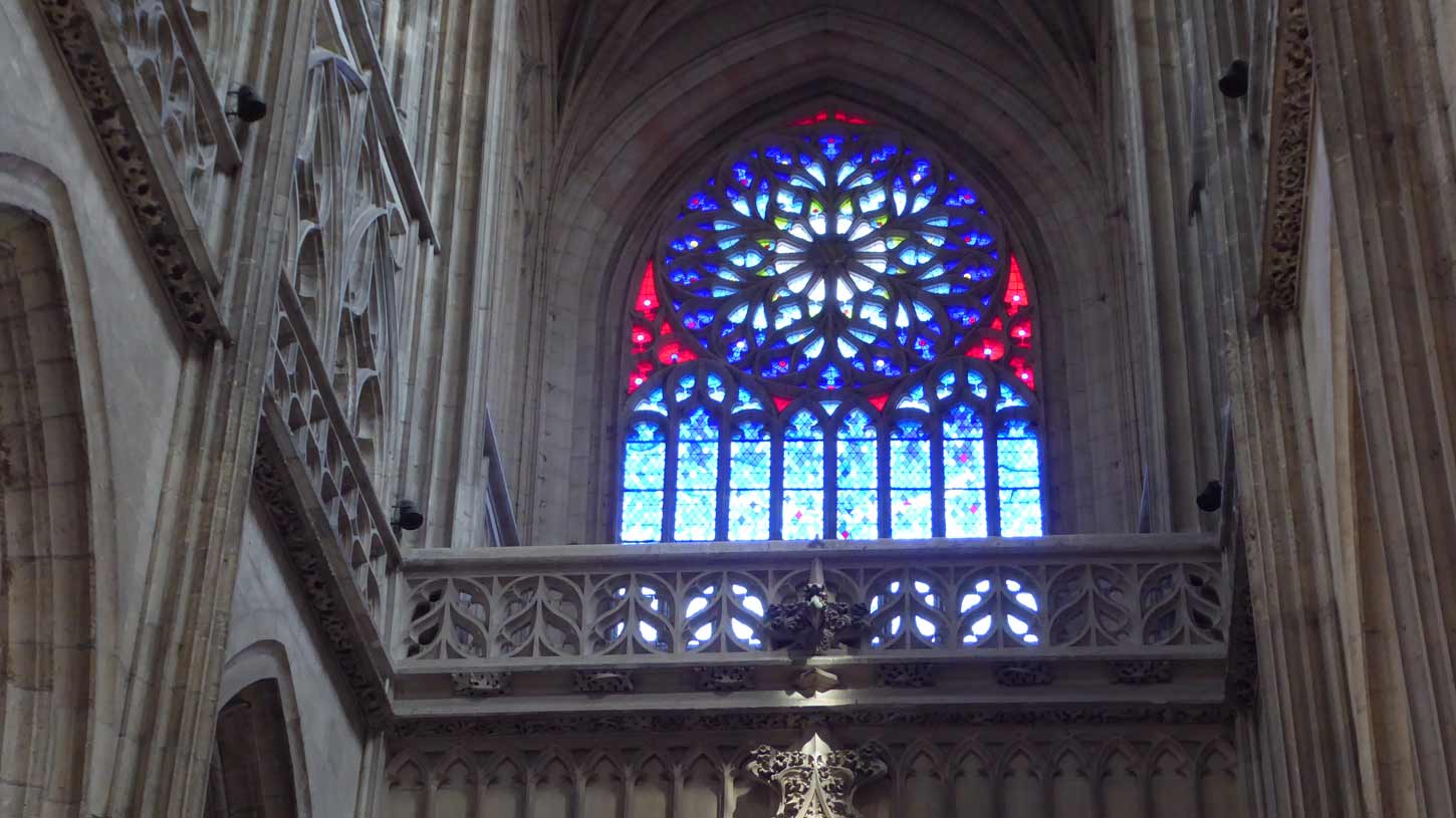 In Beauvais eerst de Kathedraal Saint Pierre bekeken (207/208). Deze kathedraal is de hoogste gotische kathedraal ter wereld (48,5 meter). In de kathedraal (209)