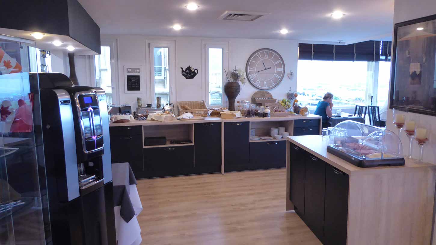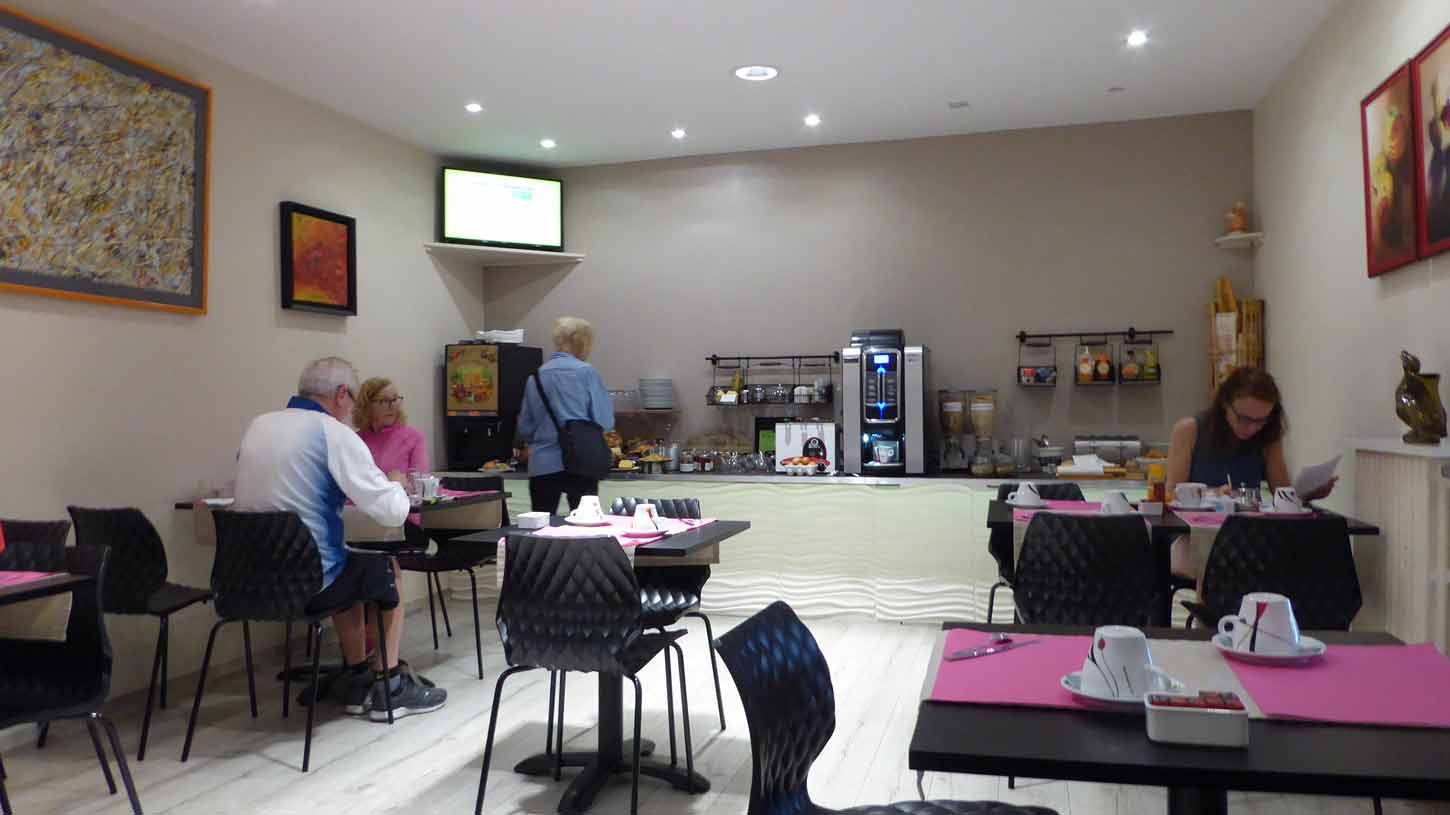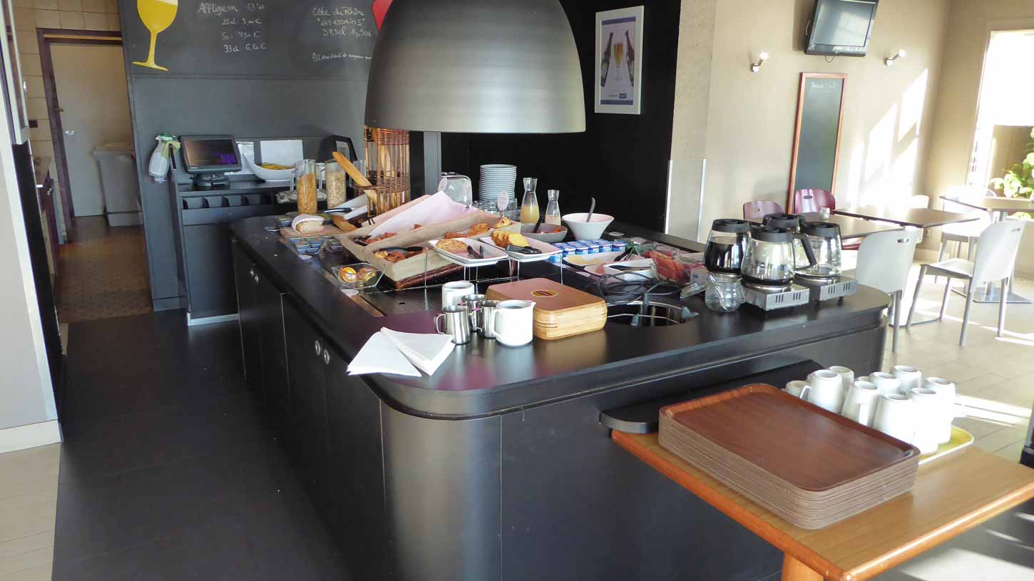 Heute Morgen, nach einem guten Fr hst ck (040) im Fr hstucksraum neben der Bar (042/043) des Hotels Hypnos (044), fuhr ich zur ck an die K ste. Auch in Frankreich gibt es
