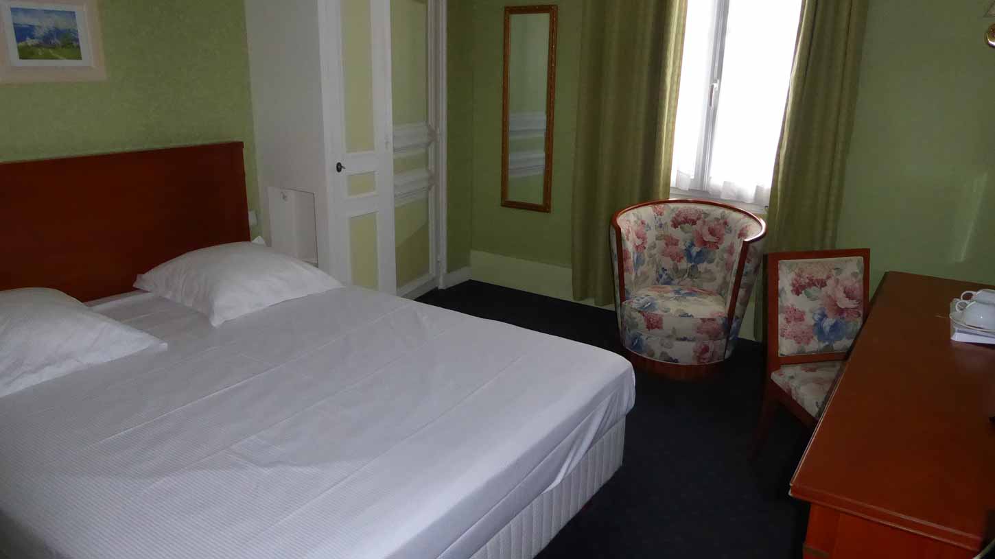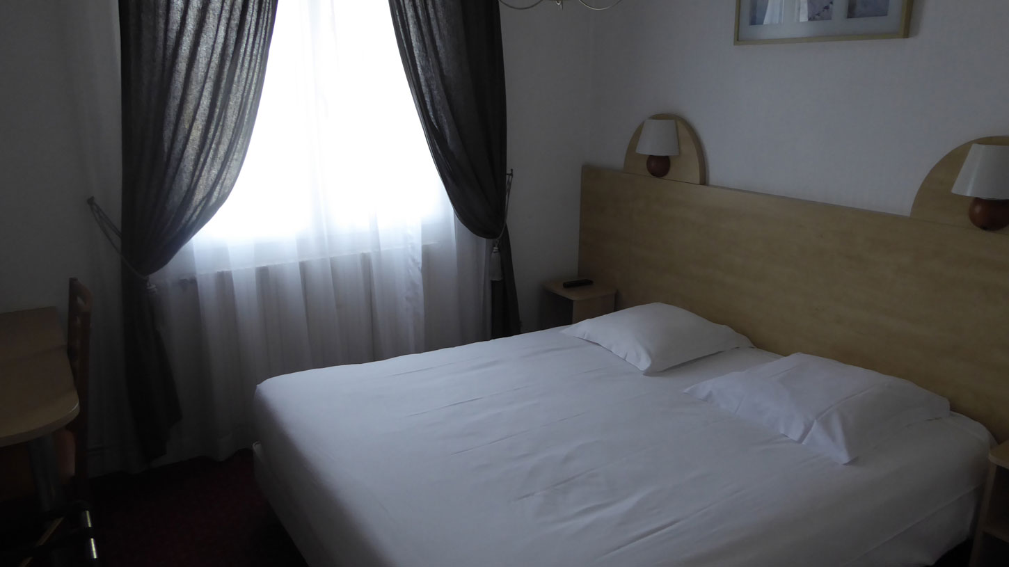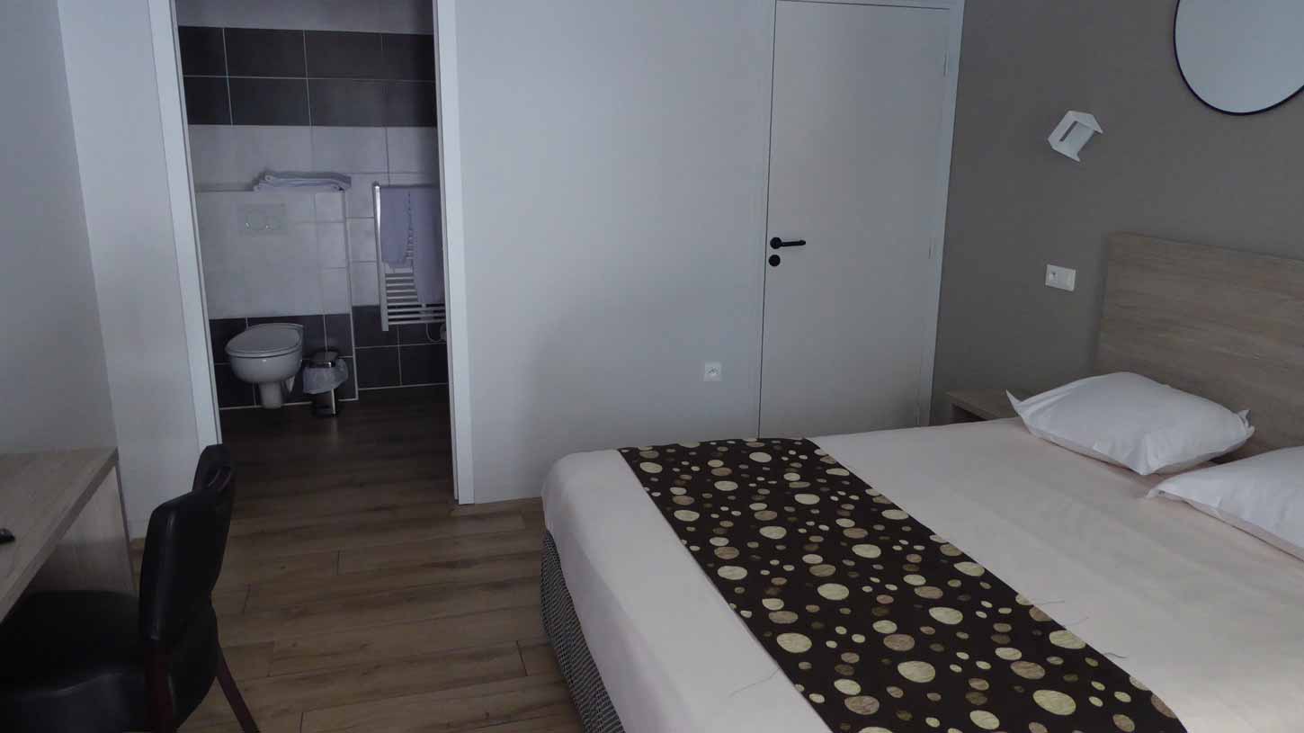 Hotel De la Place (076). Mijn (kleine) kamer bleek dubbel geboekt en al bezet. Dus kreeg ik een nieuwe, zeer ruime kamer (077) met extreem ruime (invaliden) badkamer (078)