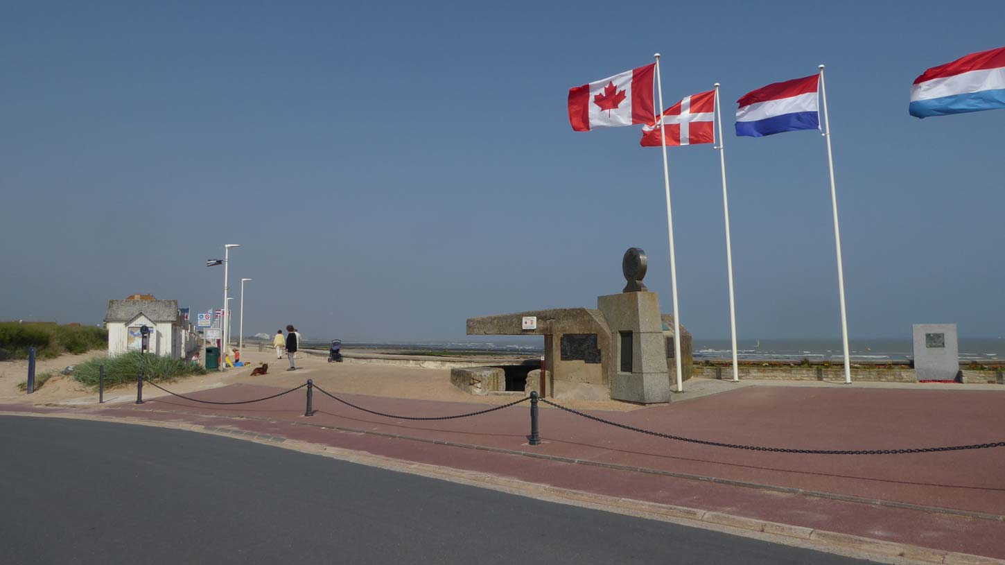Vanmorgen na het ontbijt ben ik weer terug gereden naar de kust en naar het 1e invasiestrand gegaan, Sword Beach (079). Volgende strand was Juno Beach waar ook verschillende