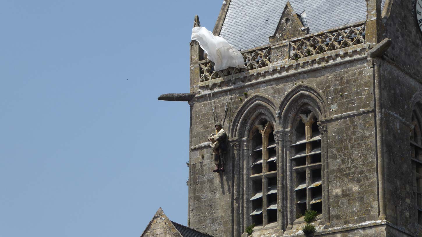 Omeha Beach (093) en Utah Beach (094 t/m 097). Nog even in Sainte-M re- glise wezen controleren of de parachutist die daar in 1944 aan de kerk bleef hangen er nog