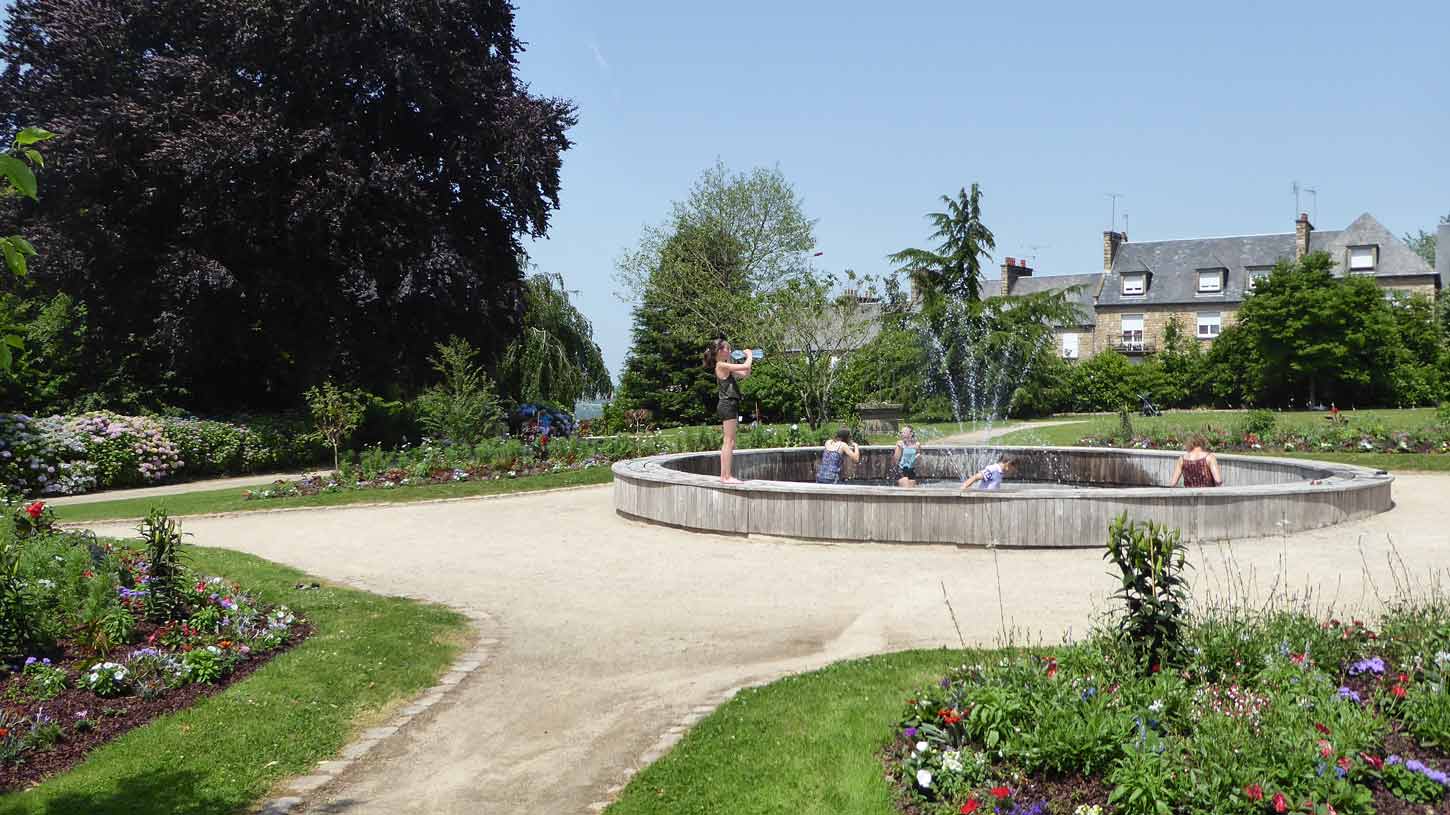Autos unterwegs bereits 37,5 C gesehen habe, mich in Avranches noch mit "nur" 33 C doch noch etwas umgesehen habe. Das Schloss und von den Jardins des Fleurs ist in der Ferne