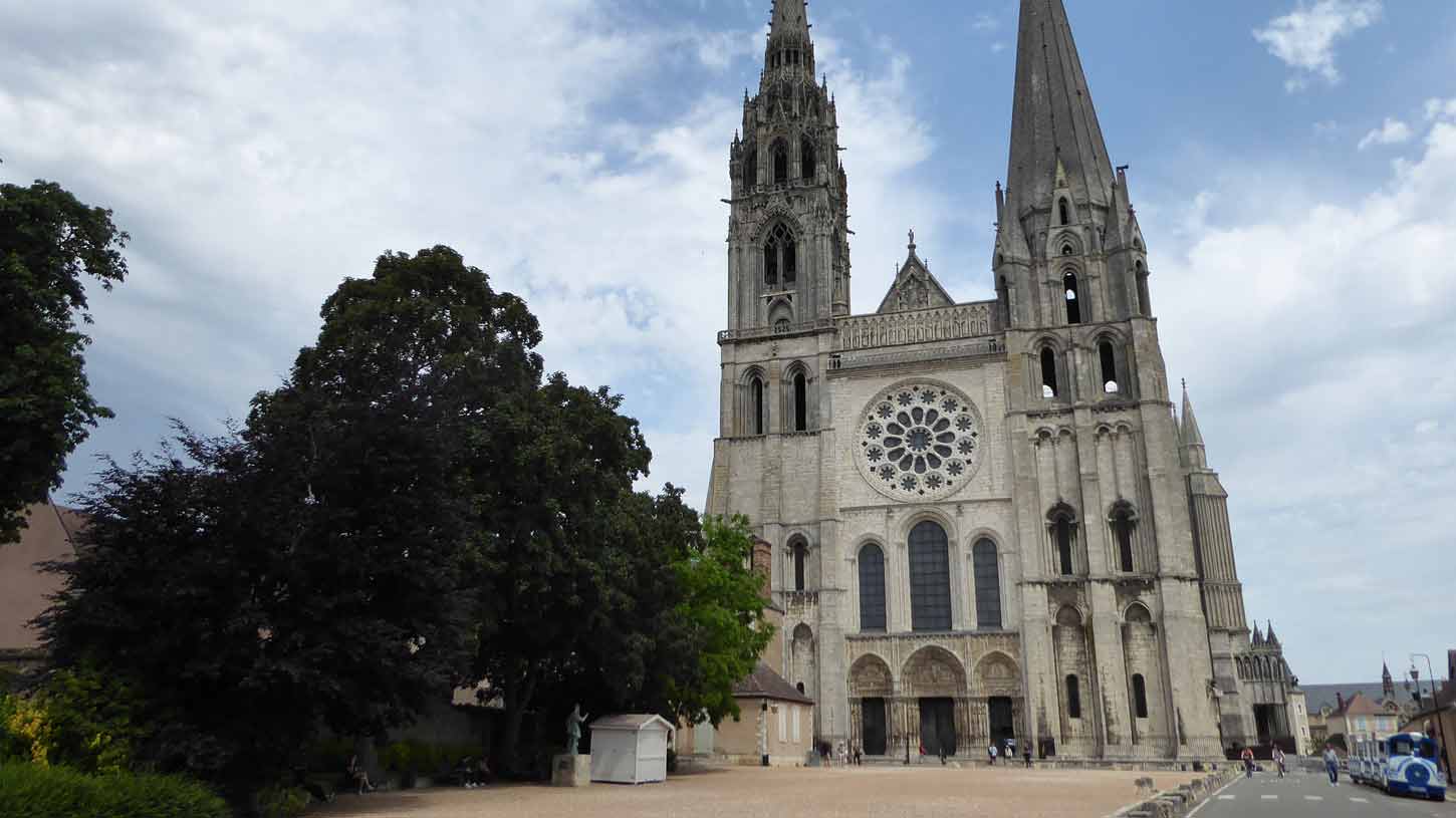 bezienswaardigheden in Fourg res zoals een fraaie tuin achter de kerk met mooi uitzicht op het kasteel (147/150). Daarna ben ik via secundaire wegen naar Chartres