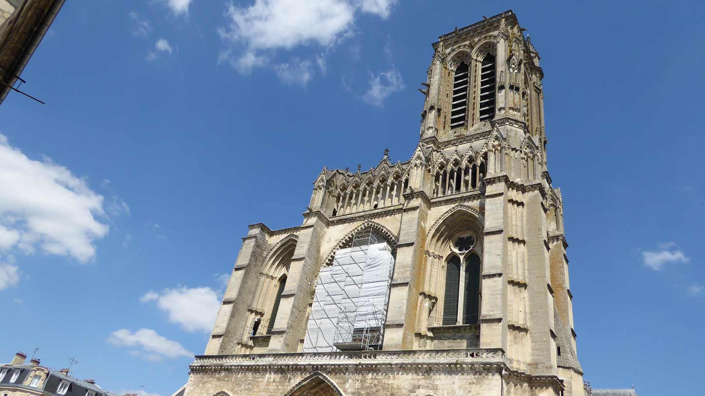 grotendeel gebouwd tussen de 12e en 14e eeuw. Daarna kwam de 100 jarige oorlog en is o.a. de 2e klokkentoren er nooit meer gekomen. Aan de zuidkant van Soissons