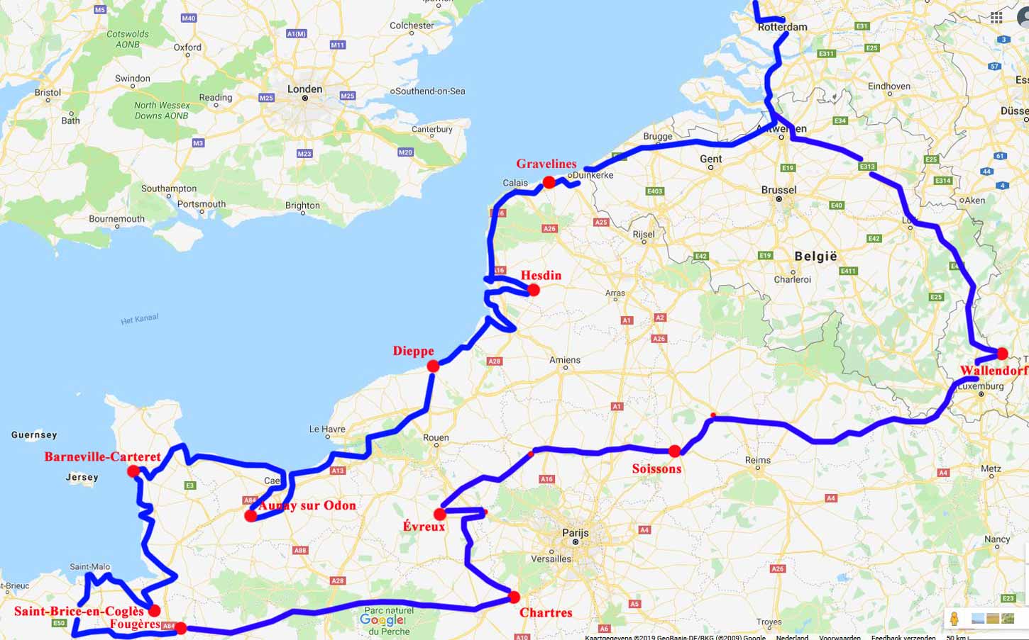 Zondag 23 juni 2019: Gereden: 327 km Weer: in Den Haag: 25,5 C: Belgie >30 C Dunkerque (Duinkerke)/Gravelines: 26 C